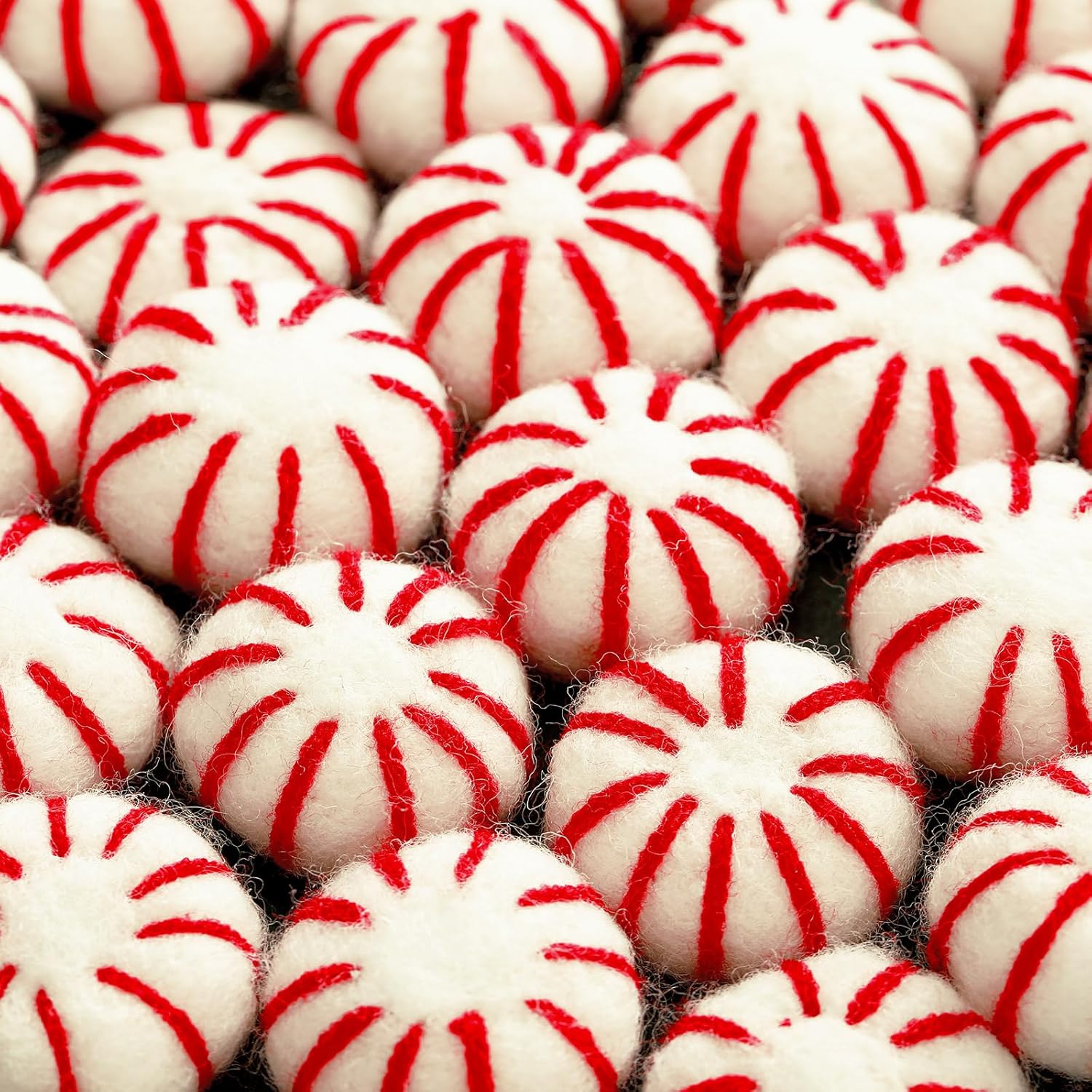 36 Pcs Felt Peppermint Decoration Christmas Wool Peppermints Christmas Arts Crafts Supplies, DIY Garland for Tree Home Vase Filler Decoration(Red)