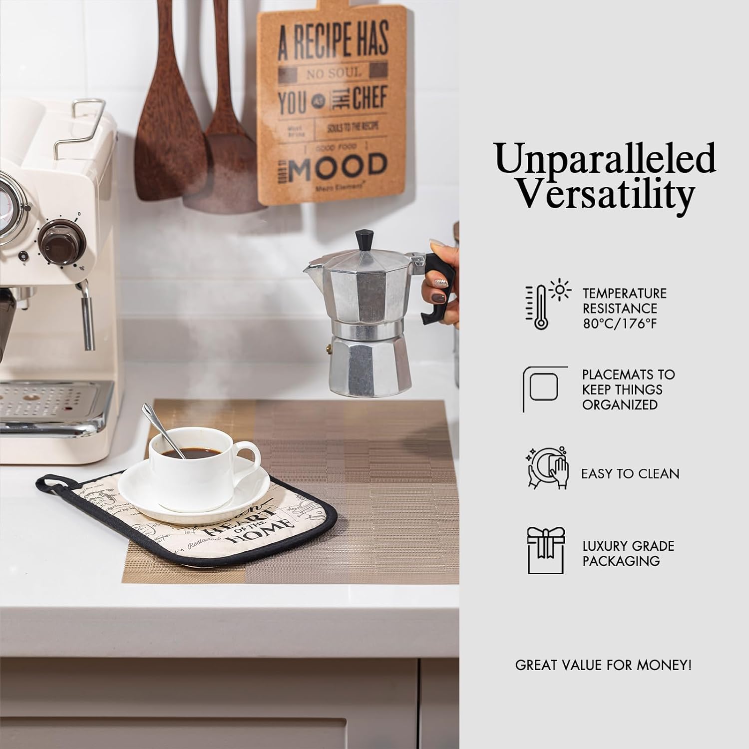 • Premium Quality and Durability: Onebento placemats are made from a high-quality blend of 70% PVC and 30% polyester, offering exceptional durability and aesthetic. This combination ensures long-lasting use and superior protection for your dining table, making it a perfect choice for quality-required consumers.