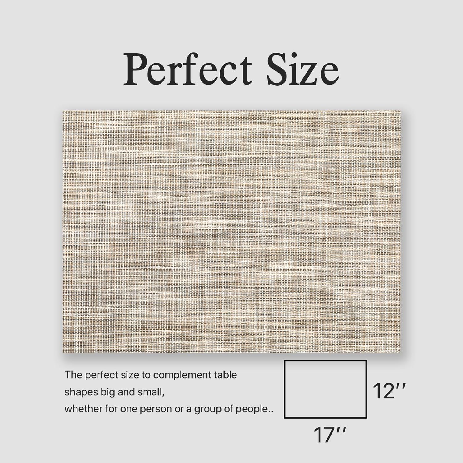 Placemats Set of 12 - Easy Clean Woven Vinyl Placemats for Dining Table, Indoor/Outdoor Place Mats, Washable PVC Table Mats(Caramel)