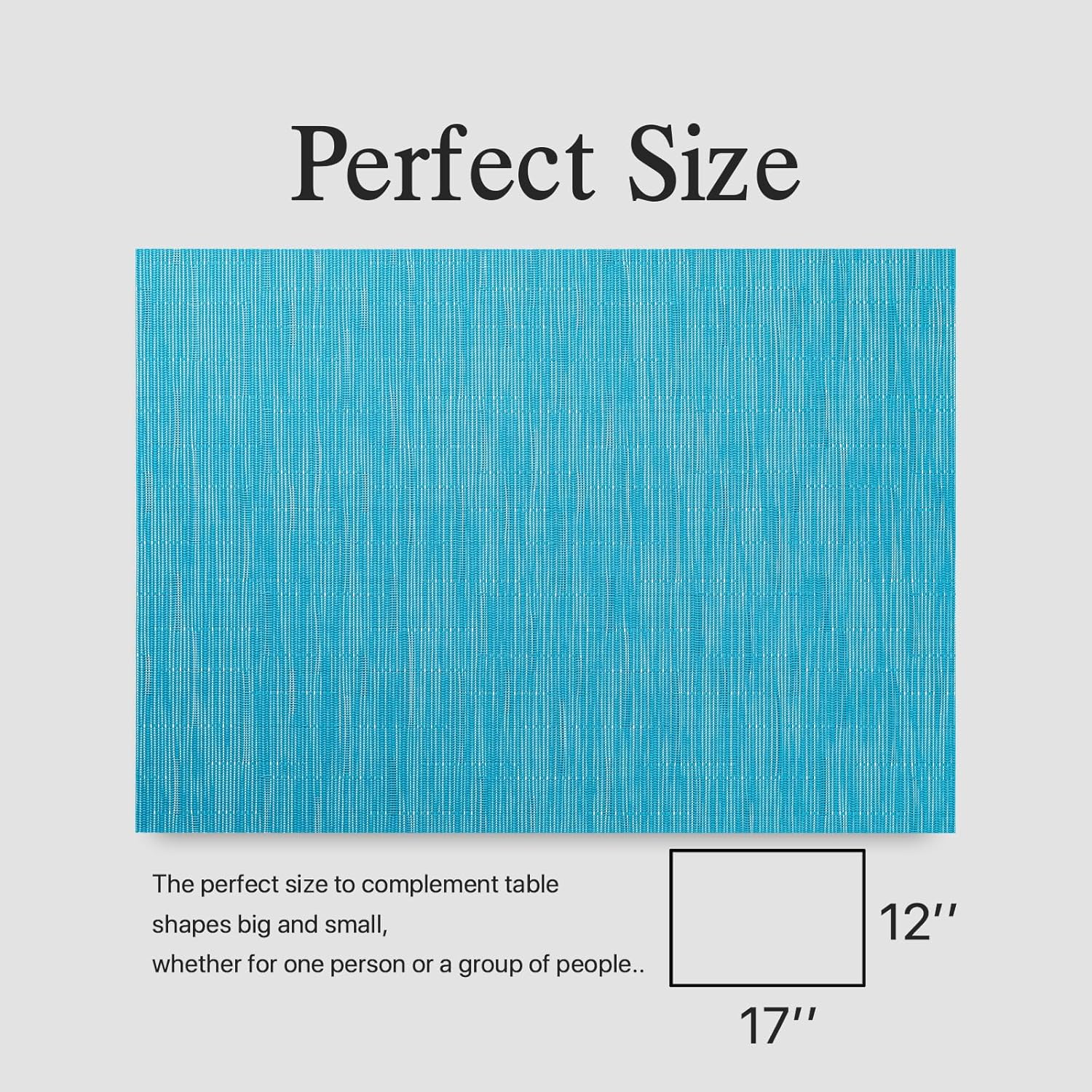 Placemats Set of 8 - Easy Clean Woven Vinyl Placemats for Dining Table, Indoor/Outdoor Place Mats, Washable PVC Table Mats(Teal Blue)