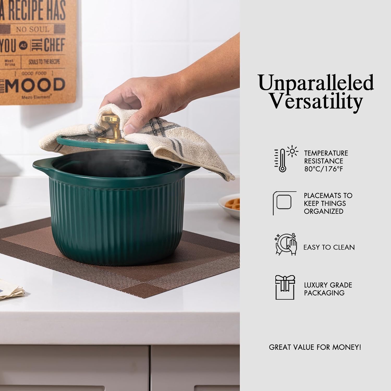 • Premium Quality and Durability: Onebento placemats are made from a high-quality blend of 70% PVC and 30% polyester, offering exceptional durability and aesthetic. This combination ensures long-lasting use and superior protection for your dining table, making it a perfect choice for quality-required consumers.