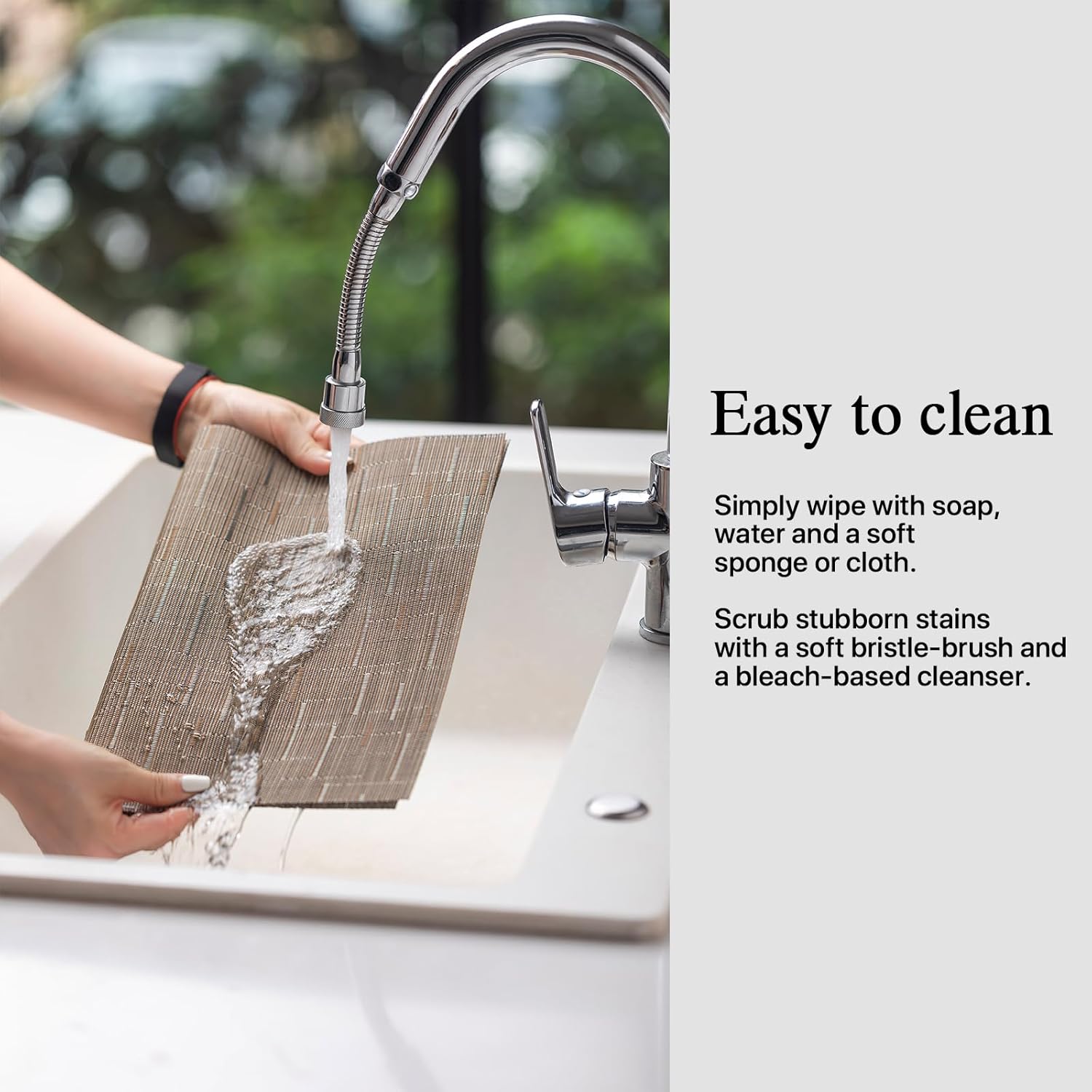 • Premium Quality and Durability: Onebento placemats are made from a high-quality blend of 70% PVC and 30% polyester, offering exceptional durability and aesthetic. This combination ensures long-lasting use and superior protection for your dining table, making it a perfect choice for quality-required consumers.