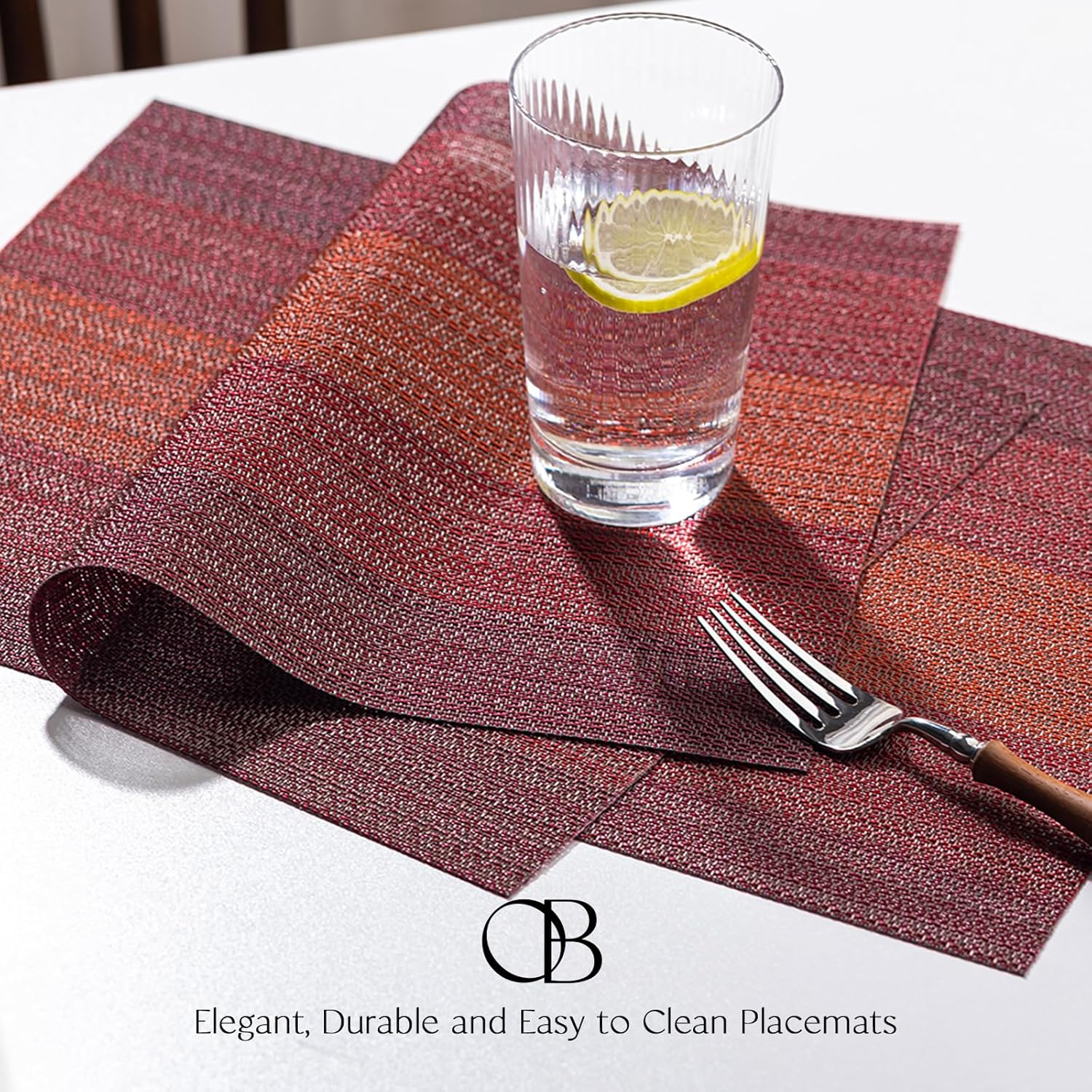Placemats Set of 8 - Easy Clean Woven Vinyl Placemats for Dining Table, Indoor/Outdoor Place Mats, Washable PVC Table Mats(Pomegranate Parade)