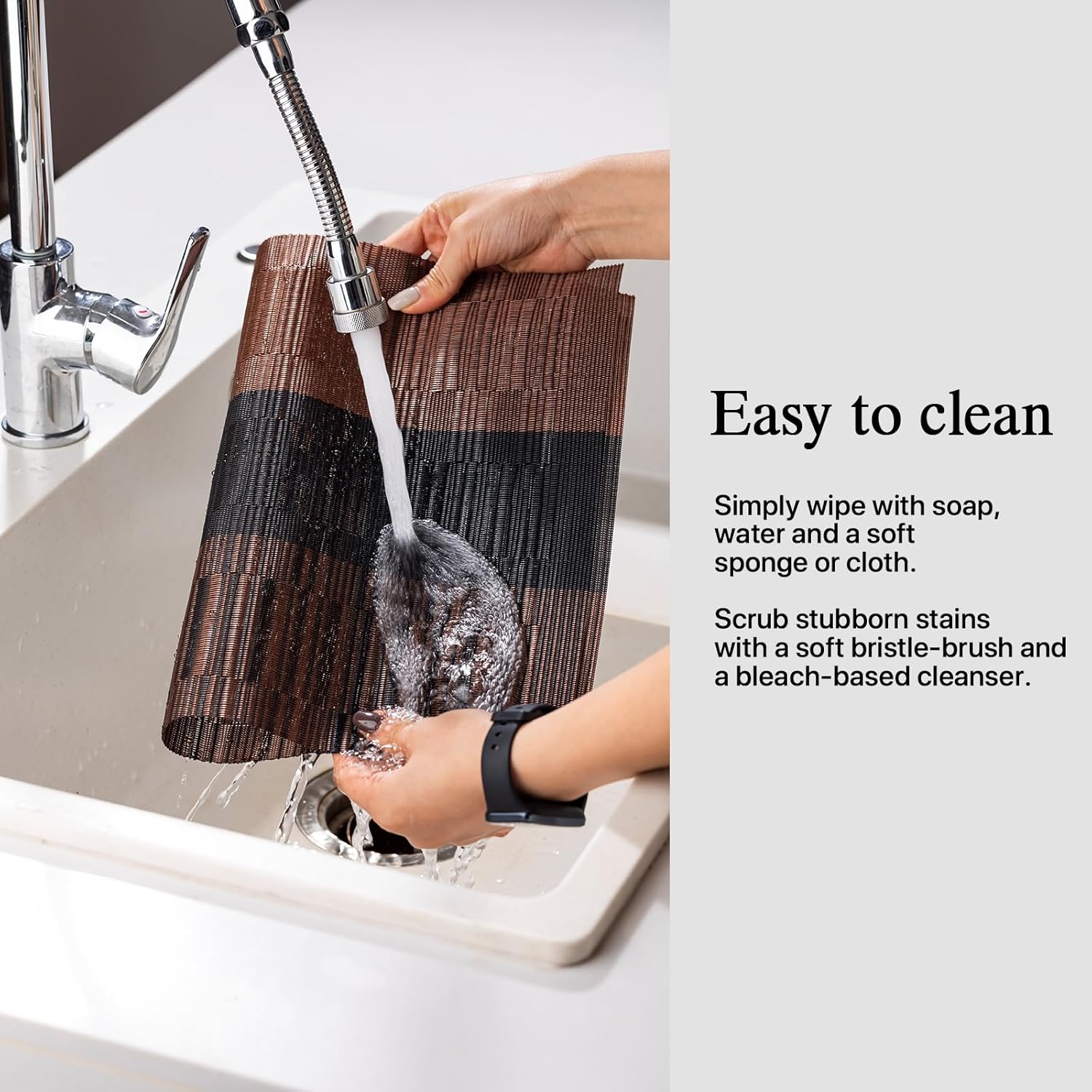 Placemats Set of 4 - Easy Clean Woven Vinyl Placemats for Dining Table, Indoor/Outdoor Place Mats, Washable PVC Table Mats (Ombre Brown Black)