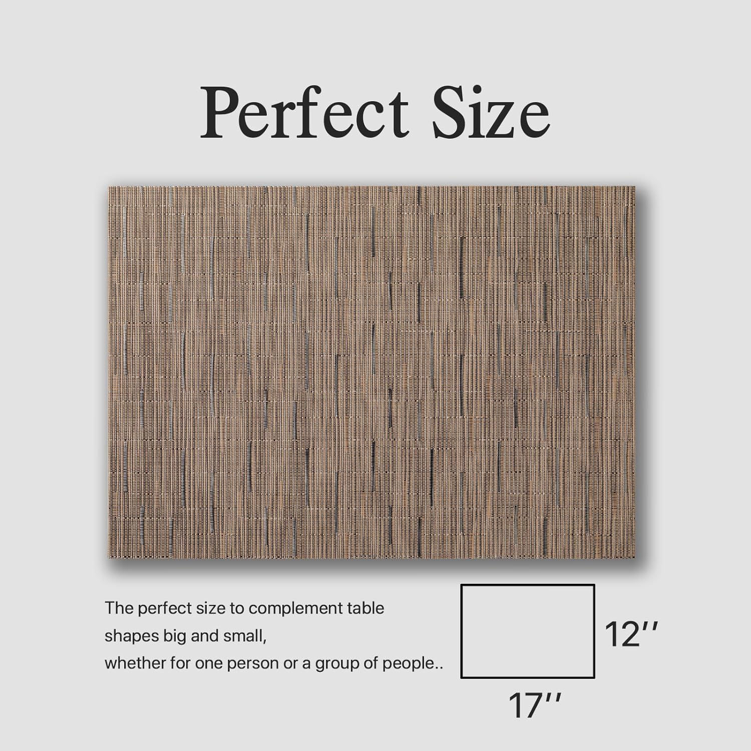 Placemats Set of 8 - Easy Clean Woven Vinyl Placemats for Dining Table, Indoor/Outdoor Place Mats, Washable PVC Table Mats (Light Brown)