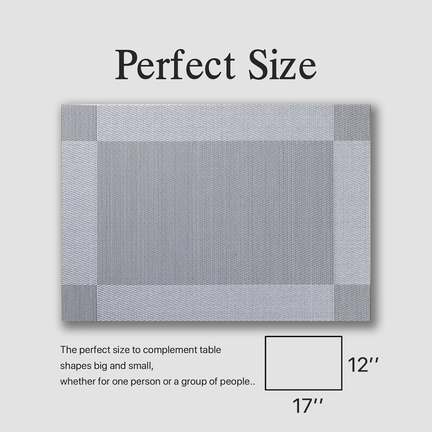 Placemats Set of 8 - Easy Clean Woven Vinyl Placemats for Dining Table, Indoor/Outdoor Place Mats, Washable PVC Table Mats (Silver Cube)