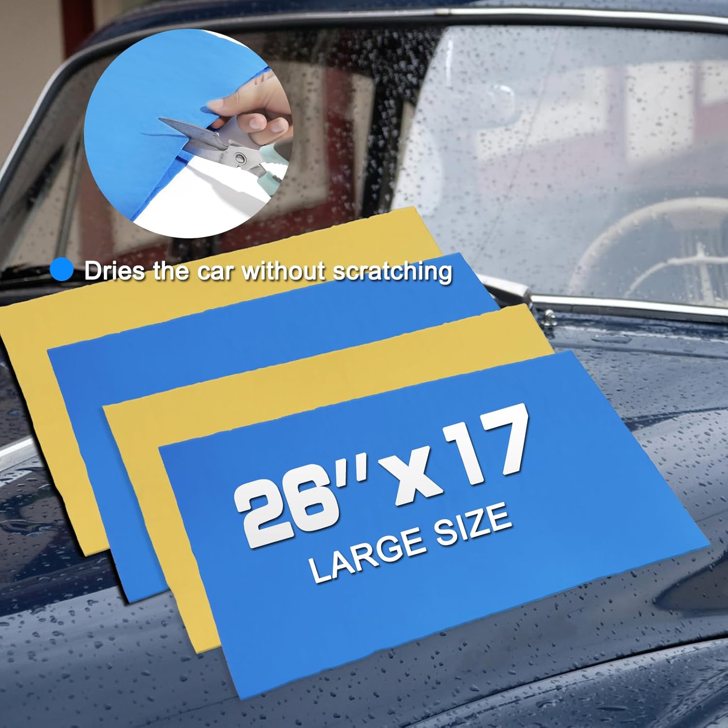 • 26"X17" Large car drying towel, reusable soft car wash cloth, chamois cloth for car, dust remove, scratch/spot/streak free.