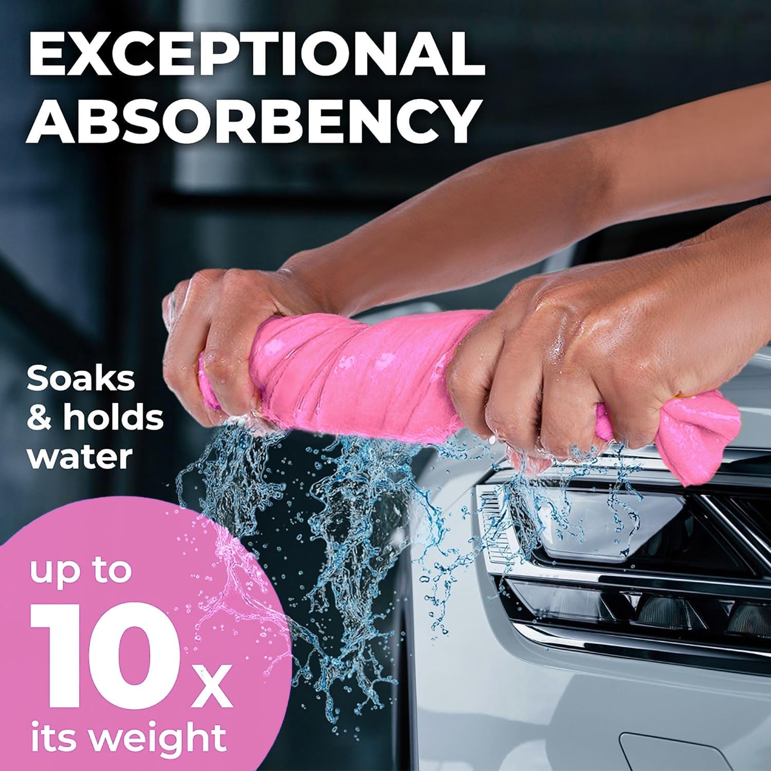 • VERY EASY TO USE — Our car wash shammy will dry out the surface with minimal effort without leaving those pesky water spots and streaks. When the car chamois for drying cars gets too wet, just wring it out and keep going.