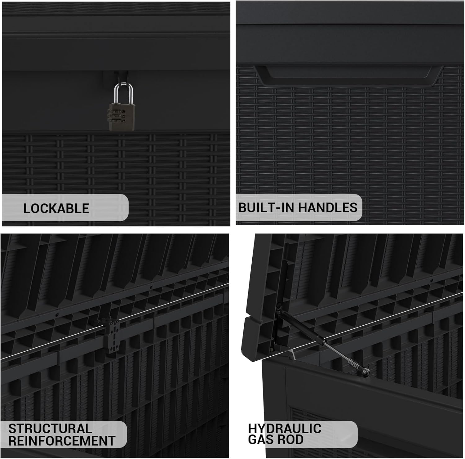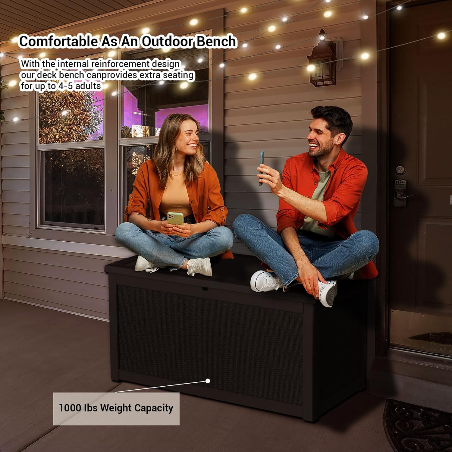 • All-Weather Waterproof Protection:Made with high-quality waterproof materials, this deck box keeps your belongings dry and safe from rain, snow, and humidity year-round.