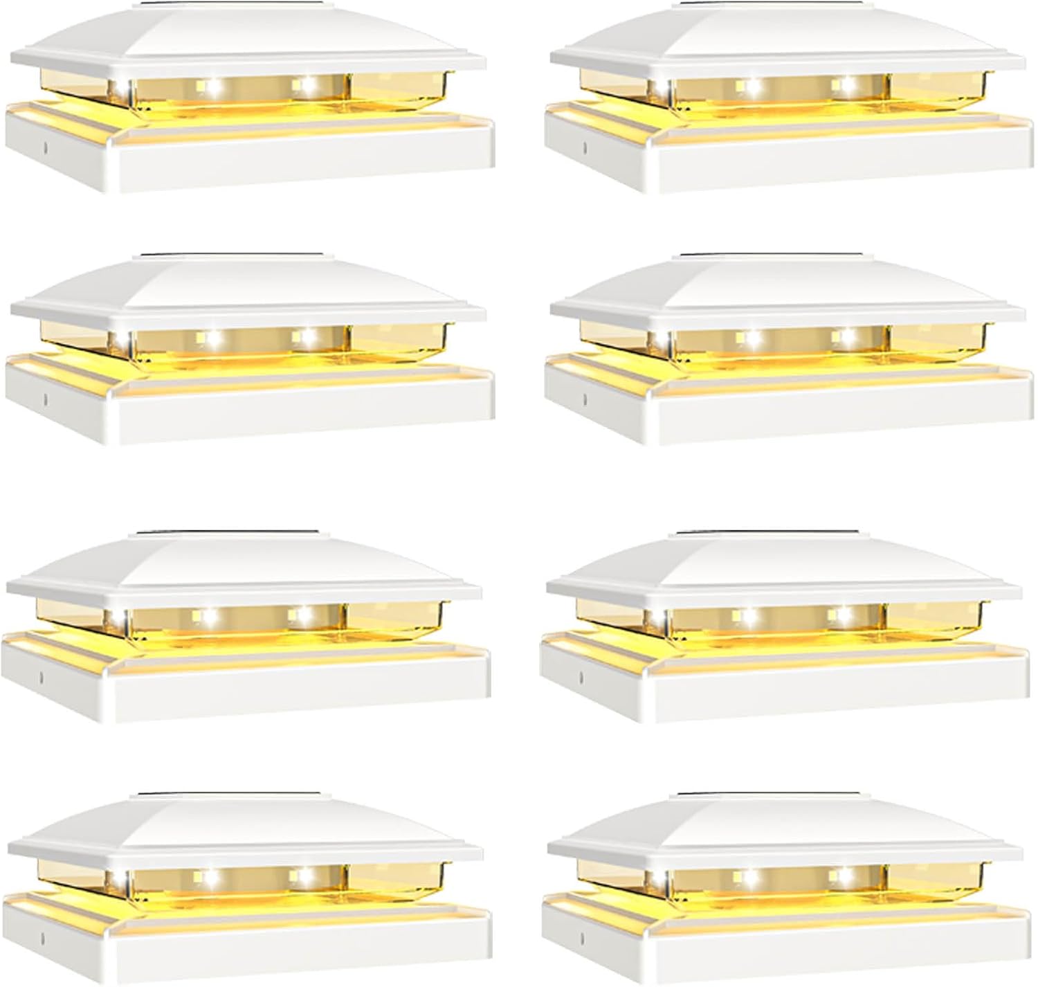 VOLISUN Solar Post Cap Light Outdoor,Solar Fence - Post Lights Waterproof for 4x4/5x5/6x6 Wooden/Vinyl Post,White Deck Cap Light Solar Powered with Warm White for Garden/Patio/Porch 8pack