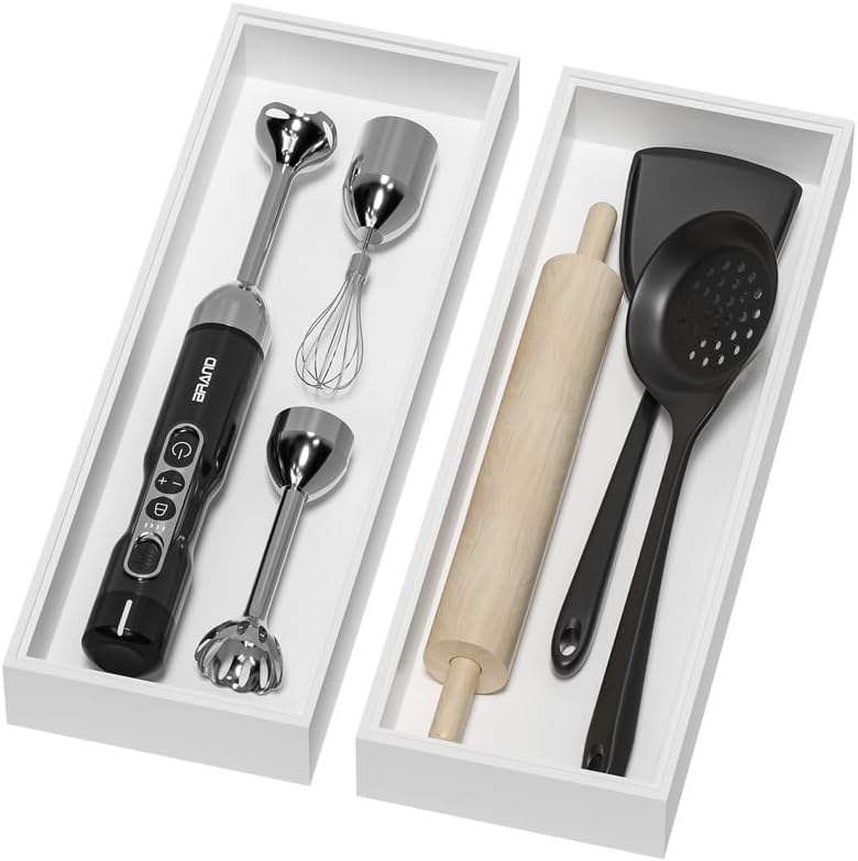 Bamboo Drawer Organizer, Extra Large Silverware Organizer for Kitchen Drawer, Stackable Utensil Organizer, 2 Pcs Toilet Tank Topper Tray, Wooden Toilet Paper Basket (White, 17 X 6 X 2 Inch)