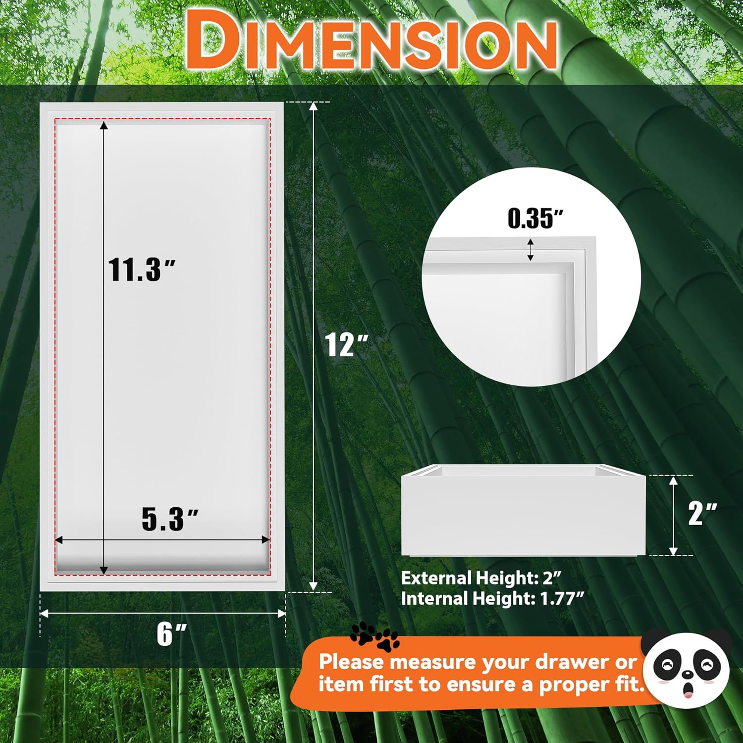 • Each bamboo drawer organizer measures: external size: 12" L x 6" W x 2" H; internal size: 11.3" L x 5.3" W x 1.77" H. Please check the size before purchasing