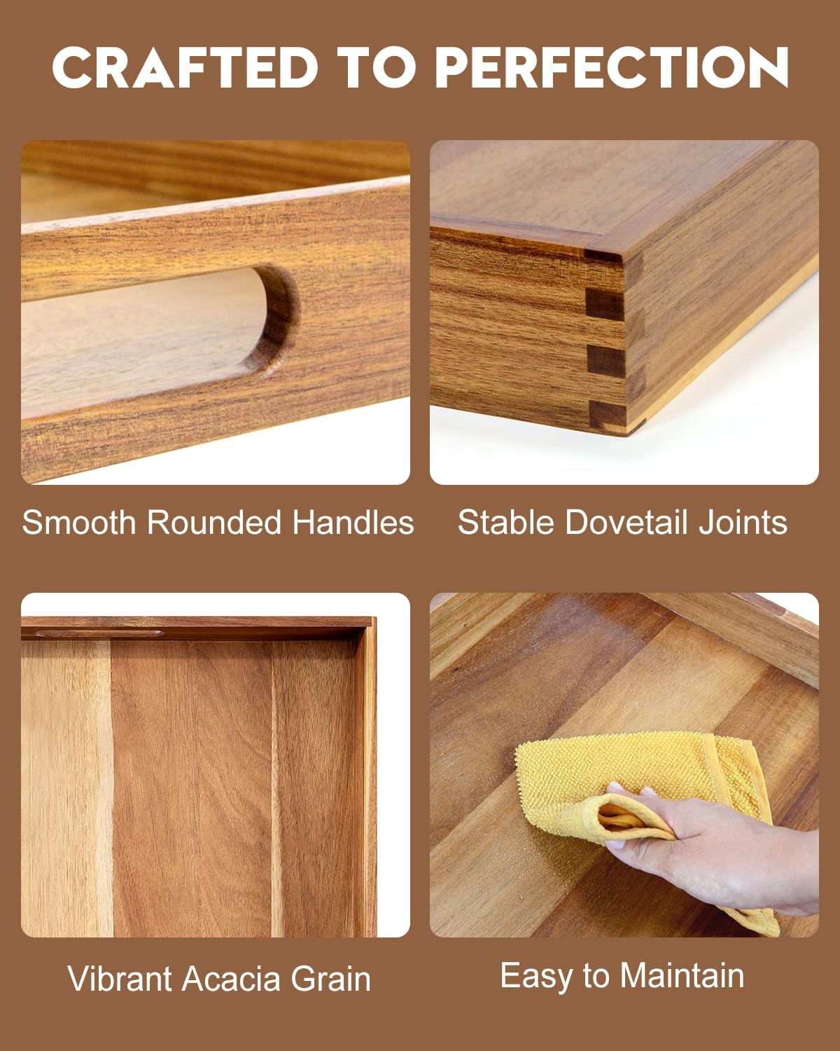 • Easy to Care For: Maintain the beauty of your Acacia wood tray with minimal effort. Simply wipe with a damp cloth to clean. For added longevity, occasionally treat the wood with a food-safe mineral oil to keep it looking pristine.