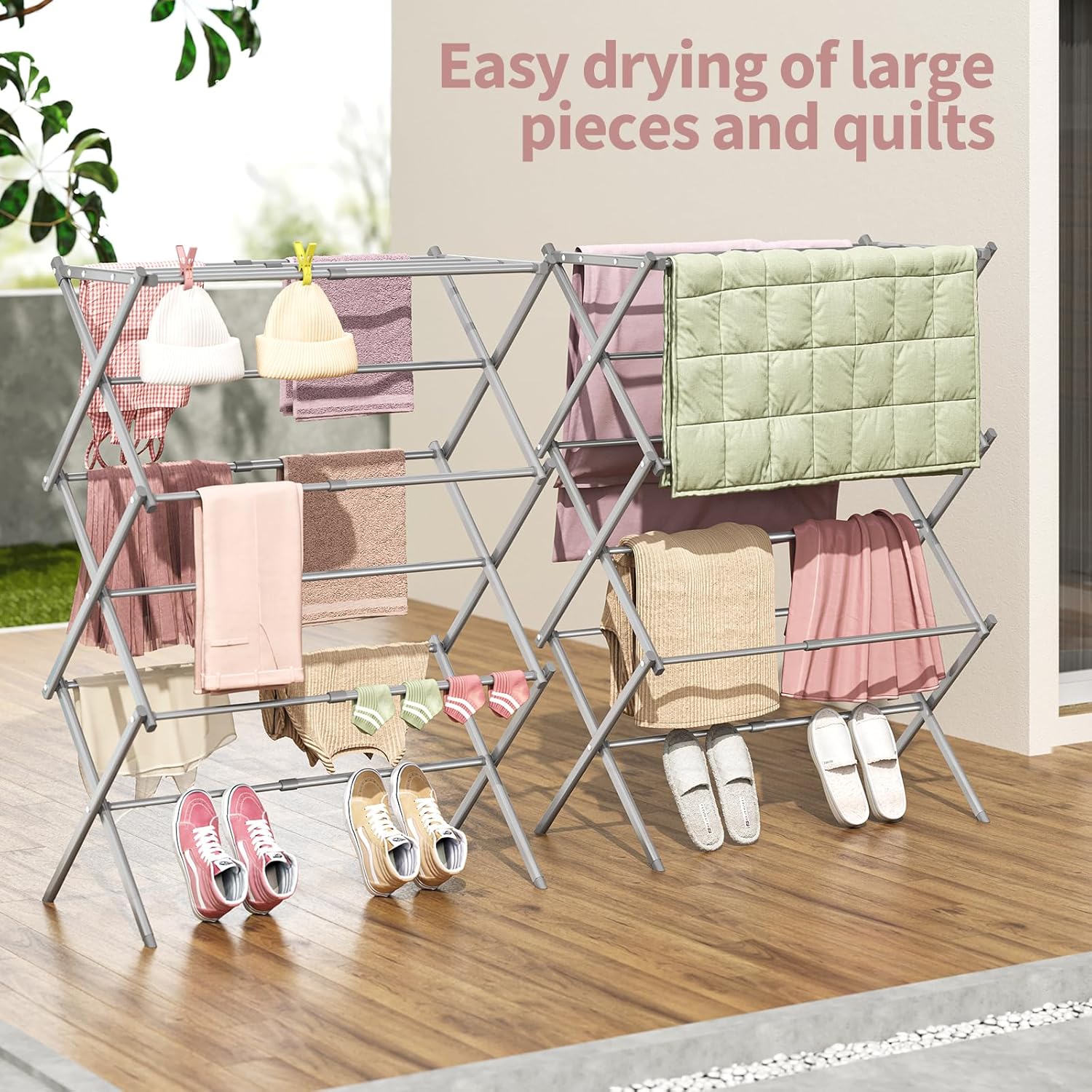 APEXCHASER Clothes Drying Rack, 3-Tier Laundry Drying Rack for Clothes, Expandable Metal Clothing Dryer, Collapsible Towel Rack, Air Drying Rack, Grey