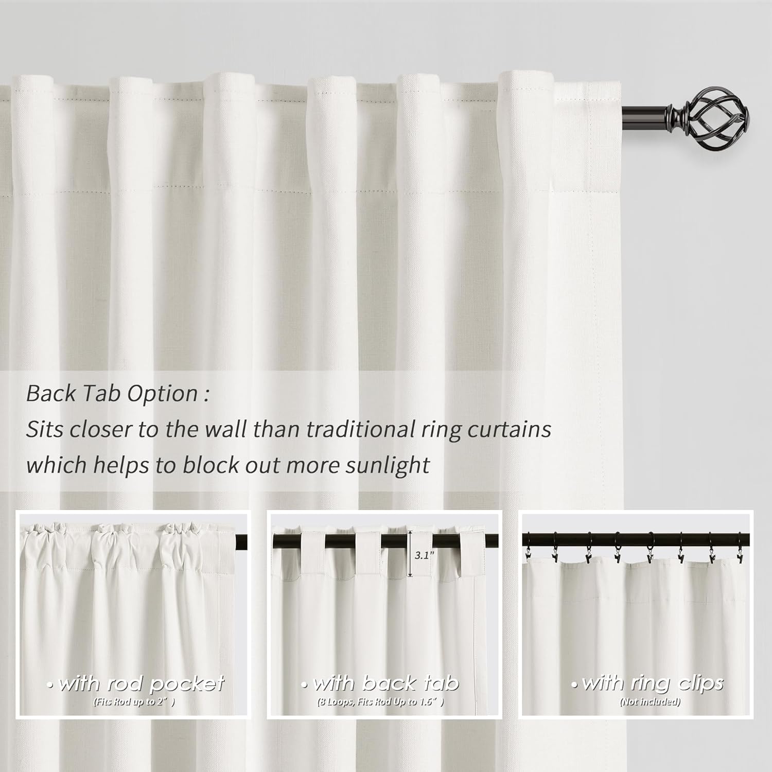 Ivory White Black Out Curtains 84 Inch Long for Bedroom Window Room Darkening Full Light Blocking Curtains Back Tab Neutral Elegant Off White Blackout Curtain Thermal Insulated Linen Drapes 52x84