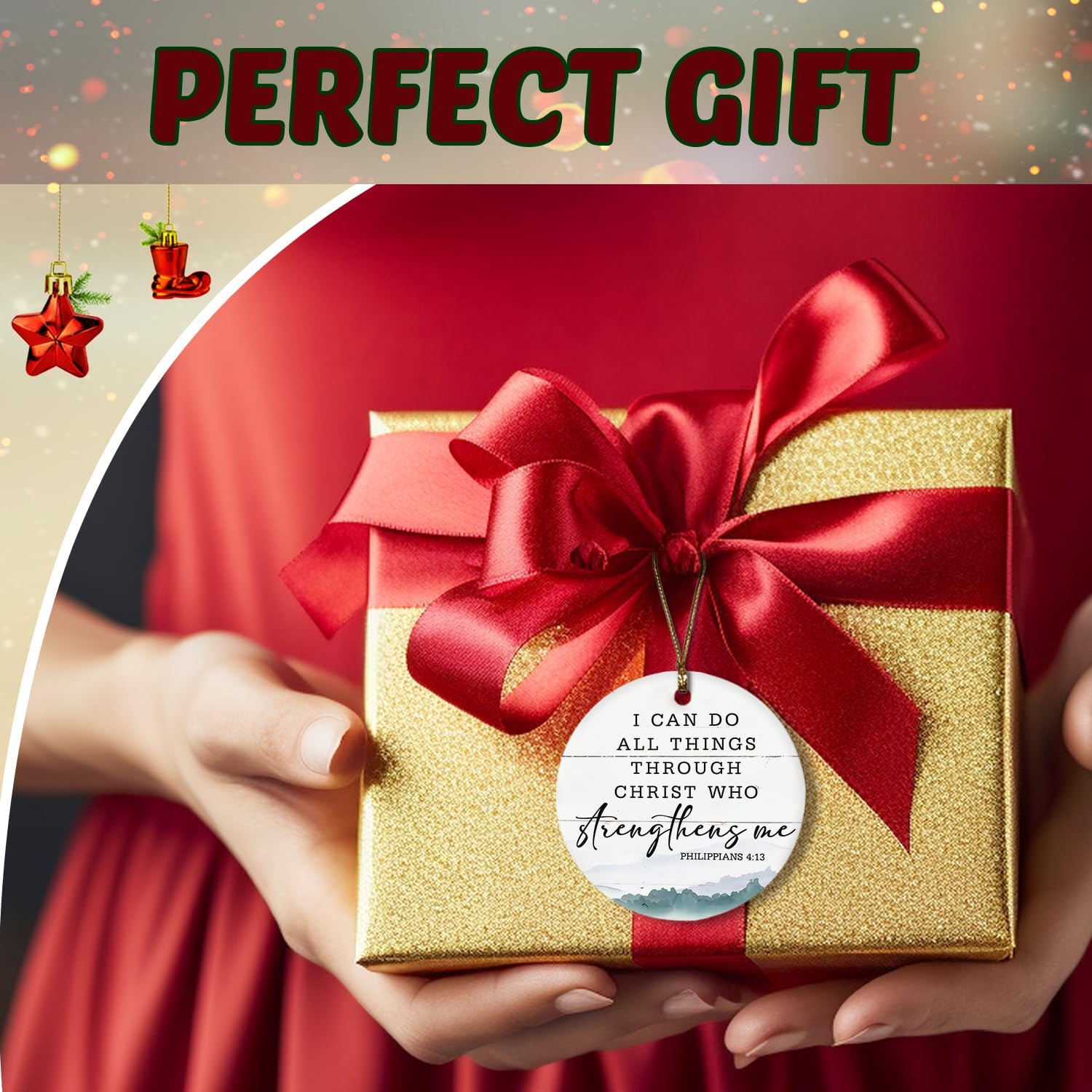 Christian Ornaments, I Can Do All Things Scripture Religious Ceramic Ornament Keepsake Decorations, Inspirational Christian Gifts for Women Teen Girls