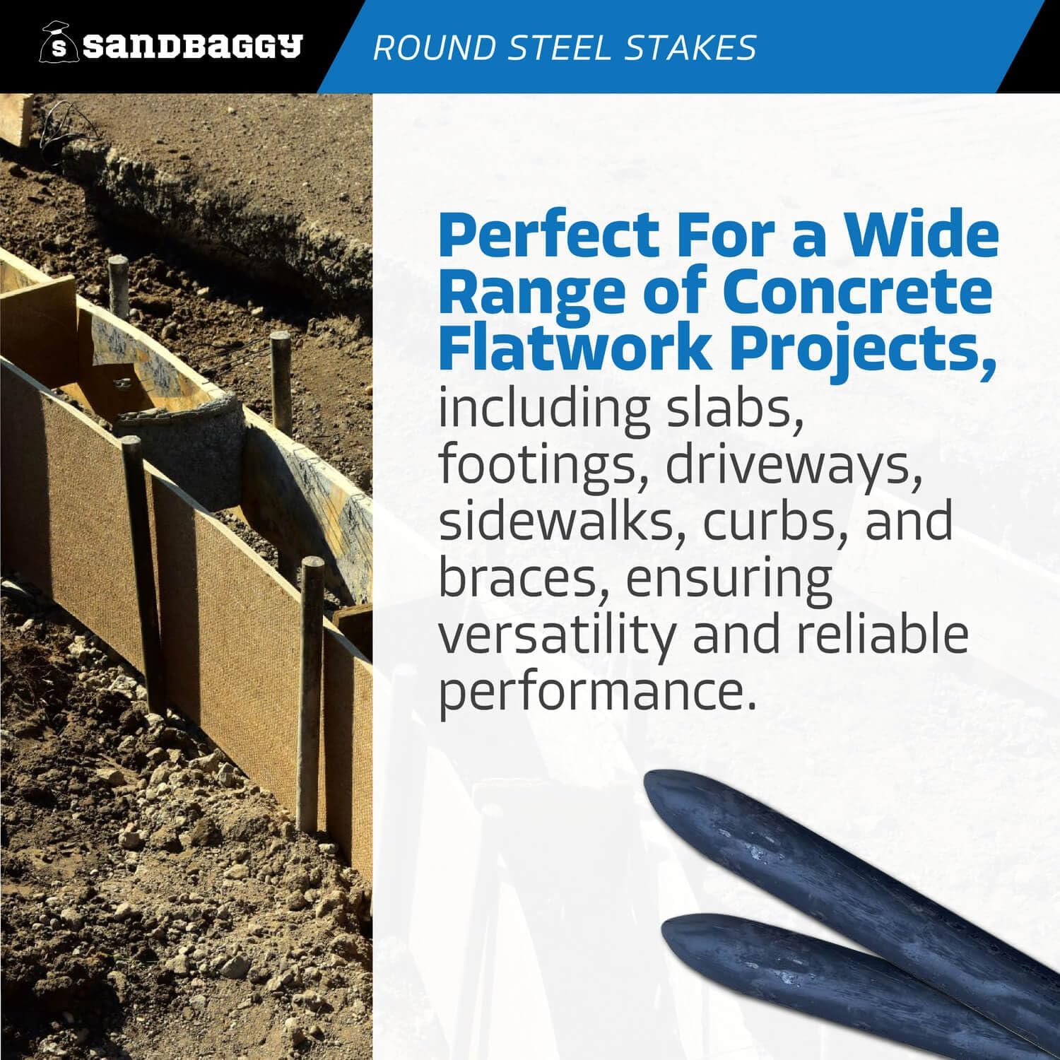 • PERFECT FOR A WIDE RANGE OF CONCRETE FLATWORK PROJECTS, including slabs, footings, driveways, sidewalks, curbs, and braces, ensuring versatility and reliable performance.