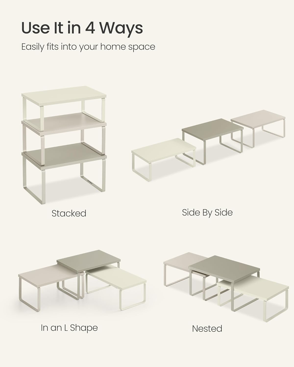 SONGMICS Cabinet Organizer Shelf, Set of 3 Kitchen Counter Shelves, Kitchen Storage, Spice Rack, Stackable, Expandable, Sand Beige UKCS220K01
