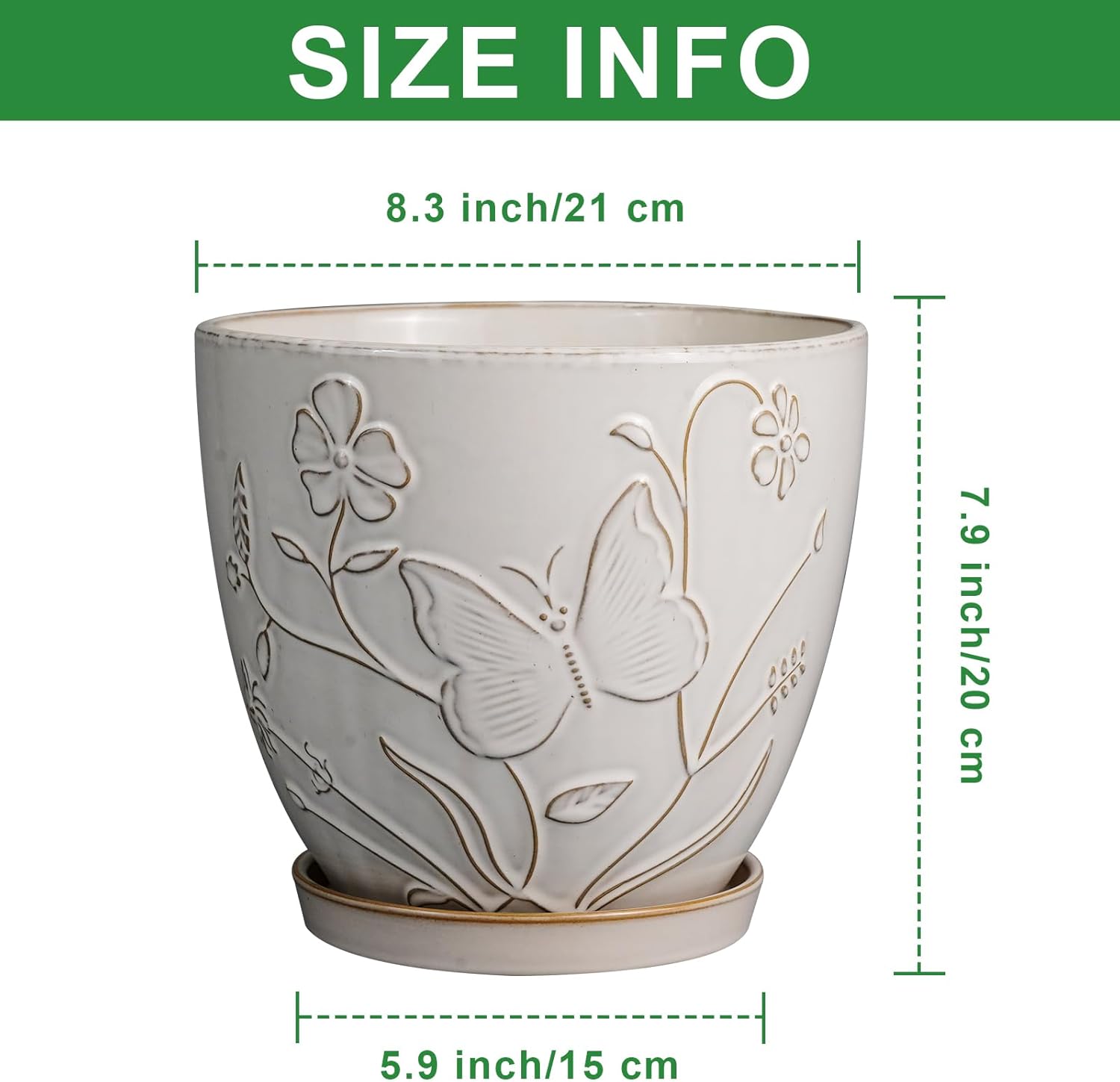 • Materials: This 8 inch plant pot is made of high-temperature ceramic material, durble and solid. This ceramic planter pot can be used indoors and outdoors for a long time, without worrying about fading, warping or rusting