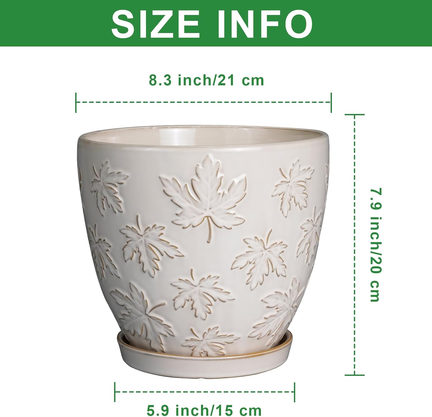 • Stylish Appearance: Our ceramic planter has a white main colour, a beautiful embossed maple leaves pattern on the surface, elegant appearance making it ideal for home decor, garden decor and office decor