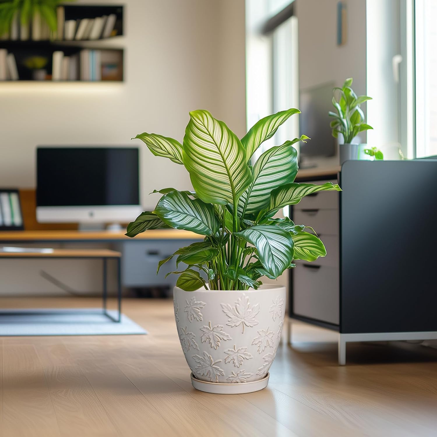 • Stylish Appearance: Our ceramic planter pot has a white main colour, a beautiful embossed maple leaves pattern on the surface, elegant appearance making it ideal for home decor, garden decor and office decor