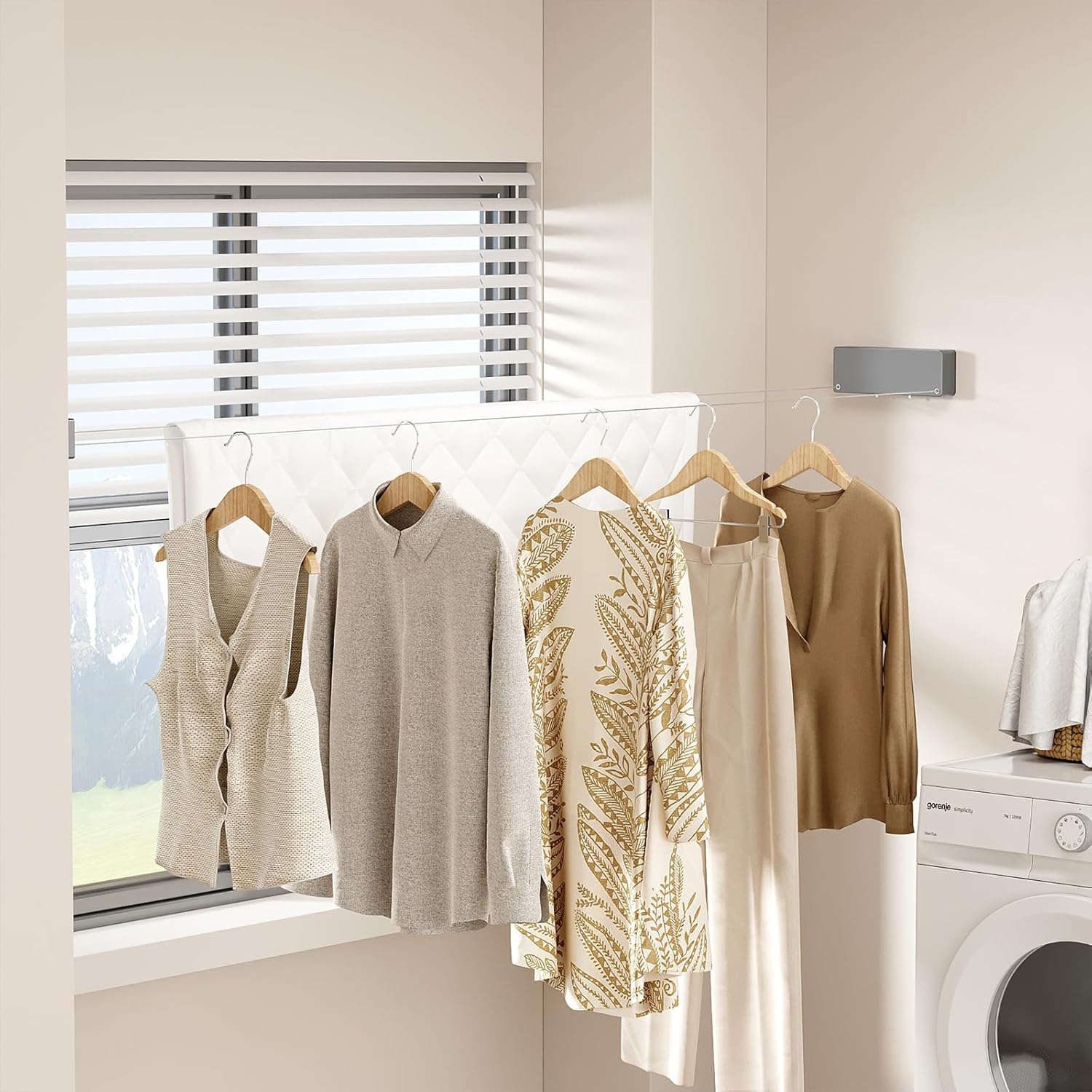 • 【Variety of Scenarios】The clothesline can be freely retracted for use when drying and stowed away when not needed. Its small size makes it suitable for a variety of scenarios such as bathrooms, balconies, toilets, laundry rooms, living rooms, pool areas and more