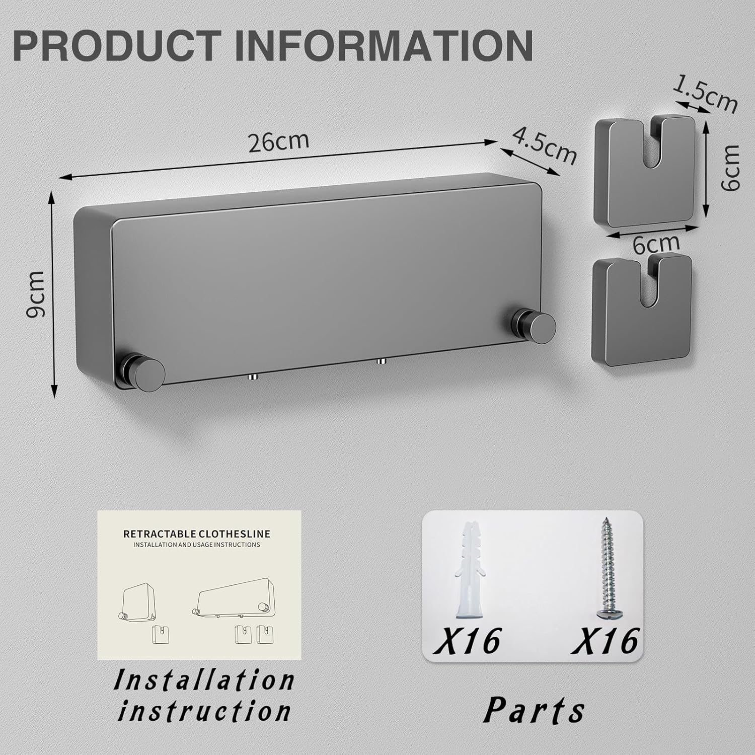 • 【Convenient Installation】This clothesline is installed with punched holes and screws to ensure a strong and durable product. The package includes the screws and anchors required for installation, as well as detailed installation instructions