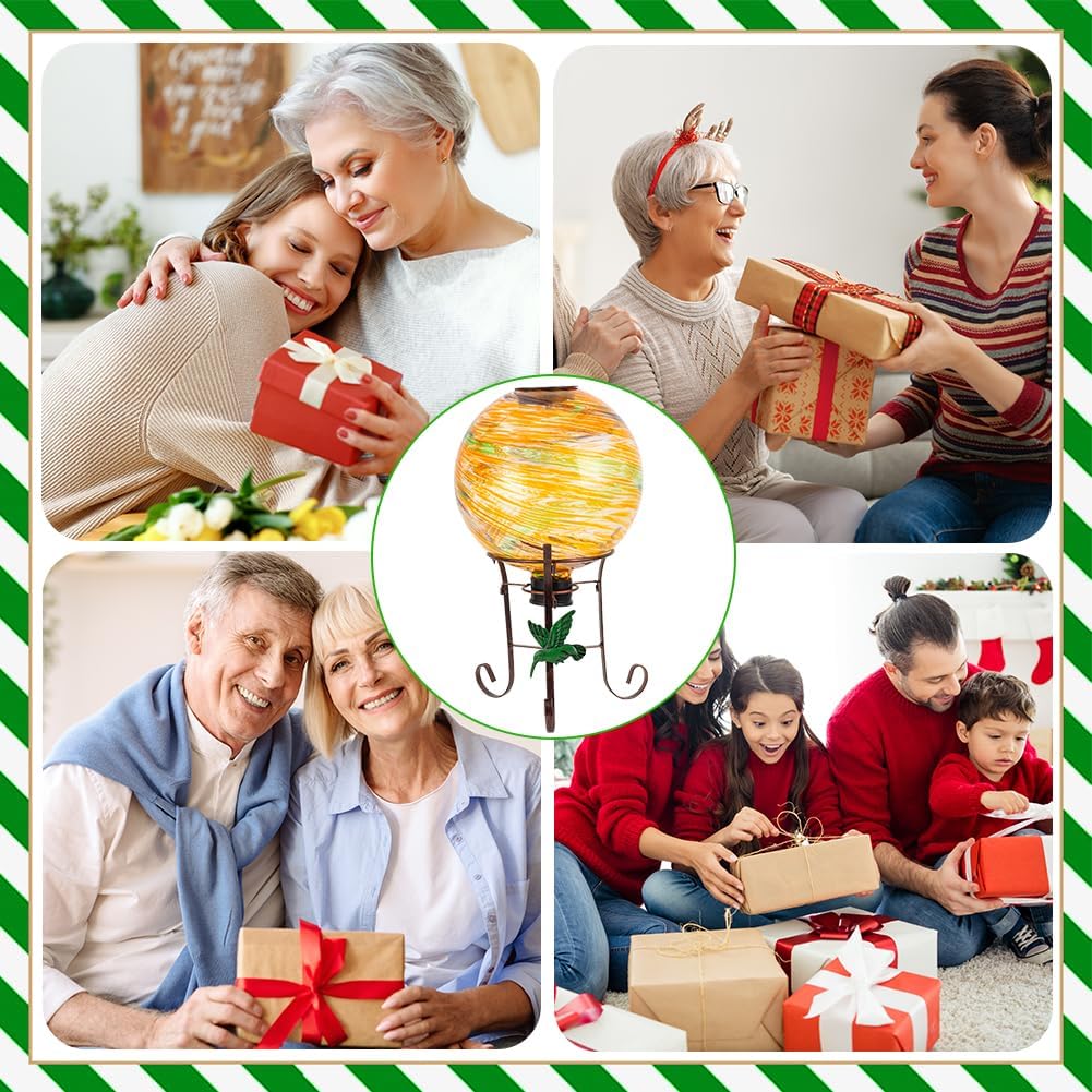 10" Diameter Solar Gazing Ball and 8.5" Metal Stand Indoor Outdoor Garden Ornament Glass Globe Sphere Yard Art Gazing Globe for Garden,Home,Lawn,Porch,Patio Birthday Gift for Women(Orange)