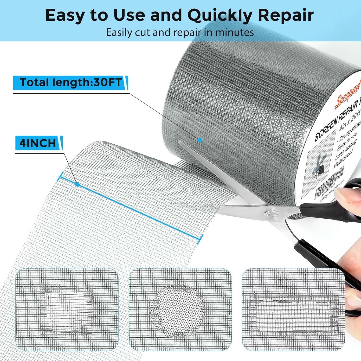 • Easy and Fast: Cut a suitable size or shape of the screen repair tape, then cover the tear or hole you want to repair. No tools needed and only seconds you're done! Fast and easy way to repair screens temporarily or permanent