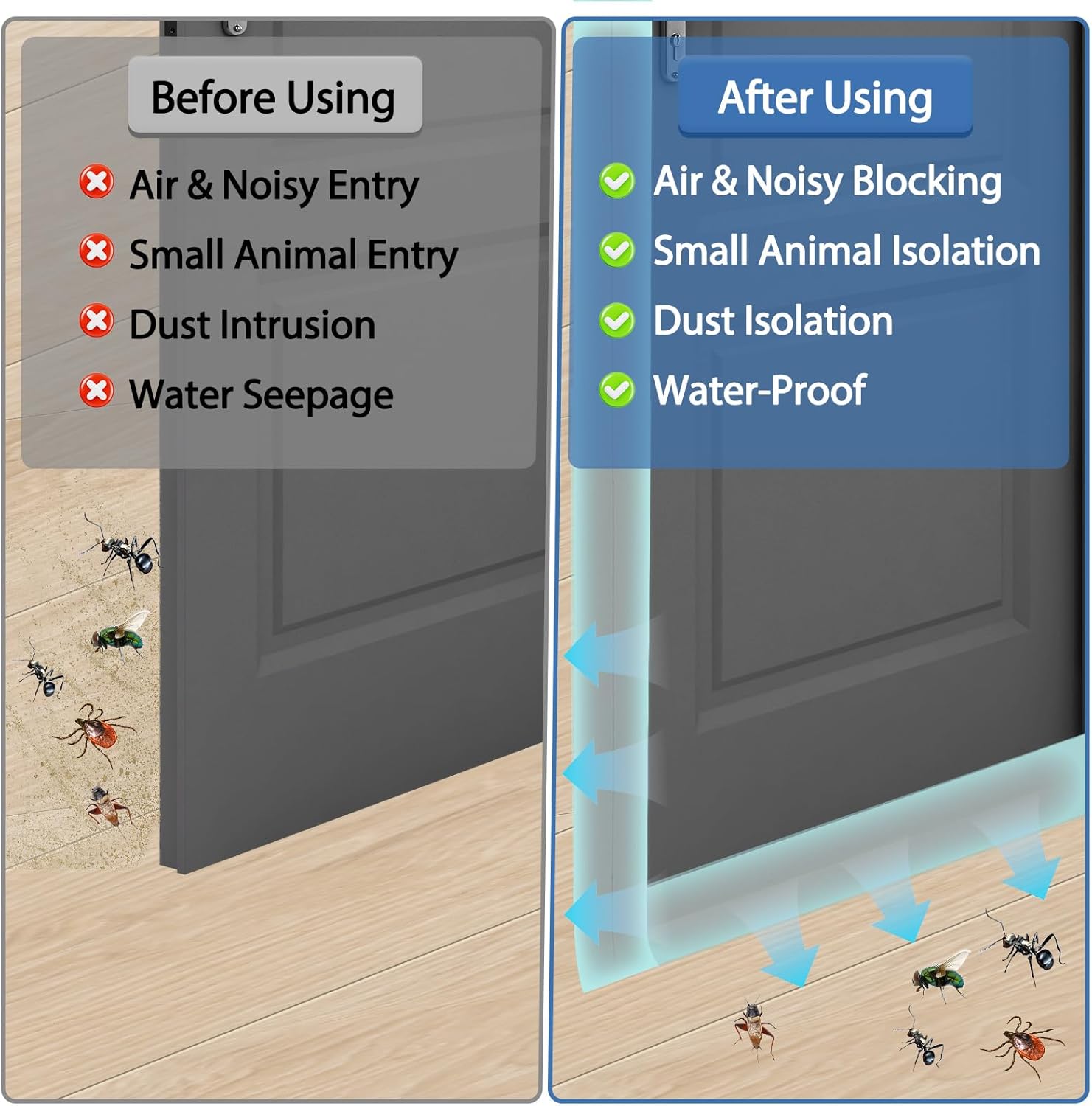 • Wide Applications: Suitable for homes, apartments, offices, garages, and even RVs. These door bottom seal strips create a tighter seal around or under your doors. They're ideal for reducing noise levels while enhancing protection to create a more comfortable living or working environment.