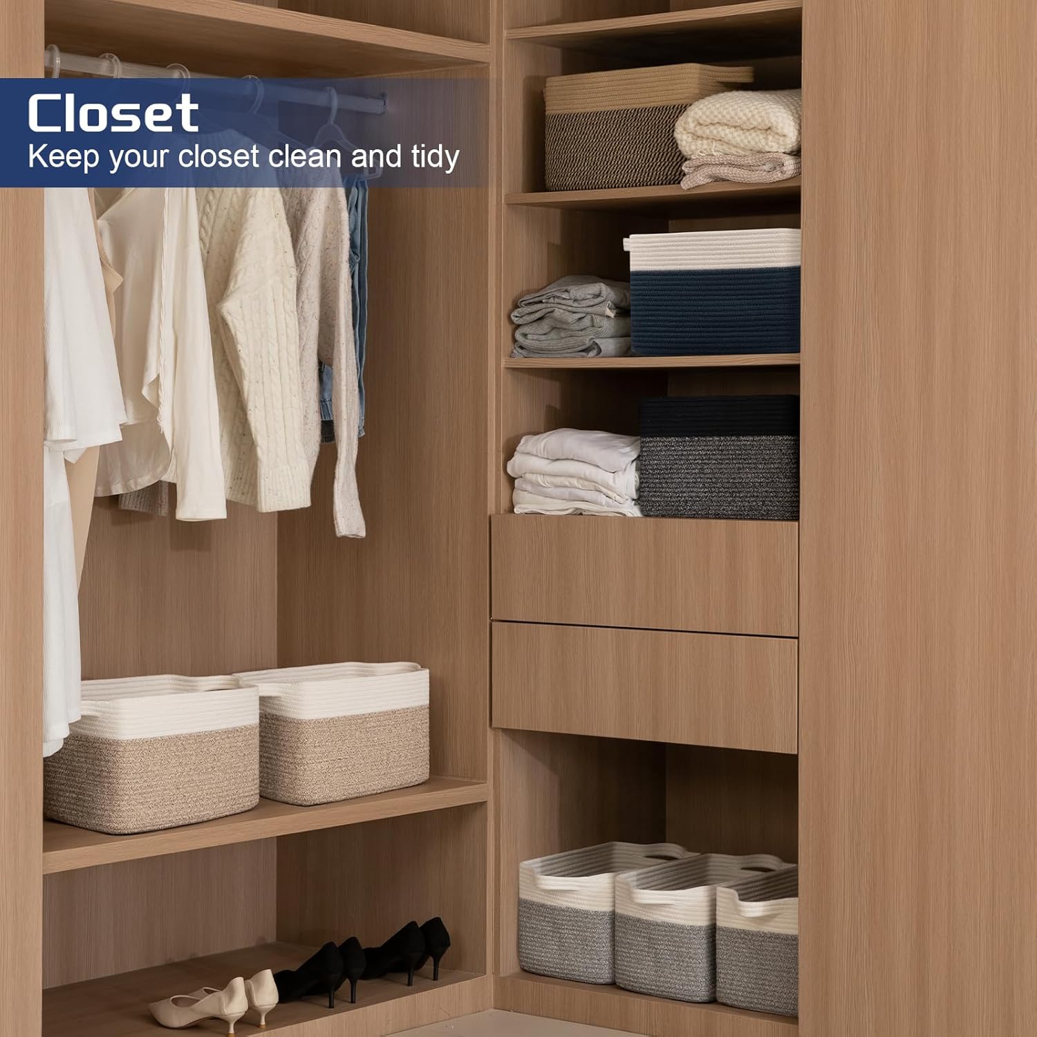 • Multifunctional Storage Basket: 13" x 9.85" x 8.7" shelf basket for organizing, which are designed to fit perfectly on living room, bedroom, bathroom, baby room, office to store household items (towels, toiletries, stuffed animals, books, baby diapers, etc.)