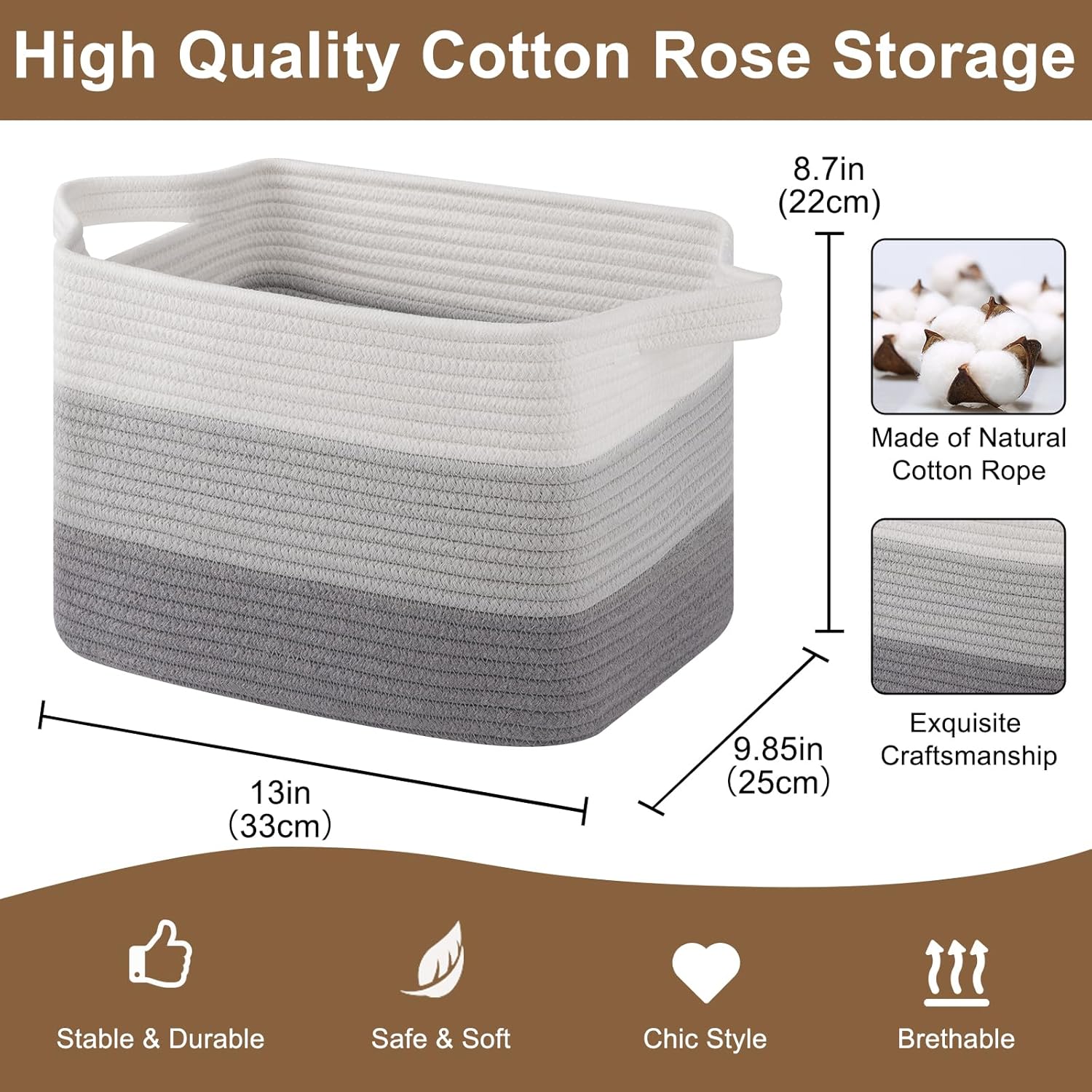 • Soft & Friendly: Woven cotton thread is very soft and skin-friendly. No odor or sharp corners, safe for kids, baby, elders and pets. Ideal for nurseries and playrooms. The soft rope baskets will not make scratches on your floor, wall or your furniture