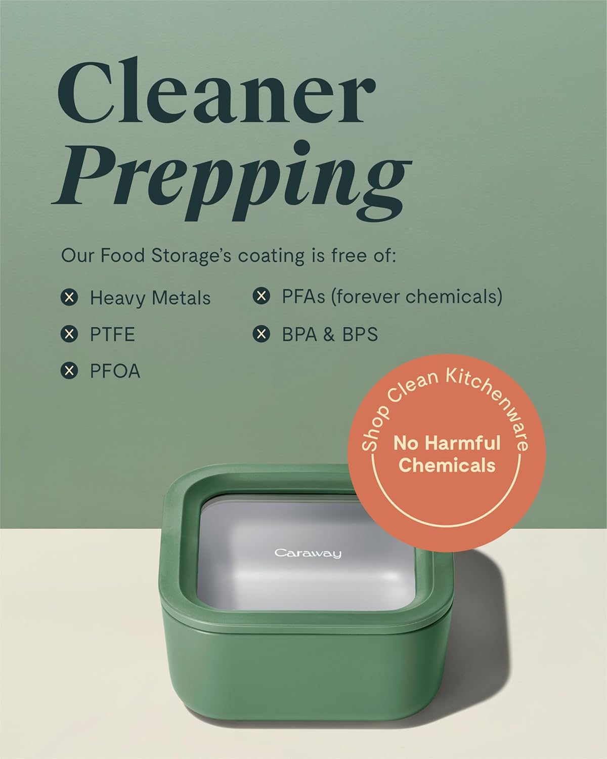 • BEAUTIFULLY DESIGNED: The cleanest, best-looking approach to storing your food. Our glass container features a clear glass lid for easy viewing Each container comes in modern colors that will match with your entire Caraway collection.