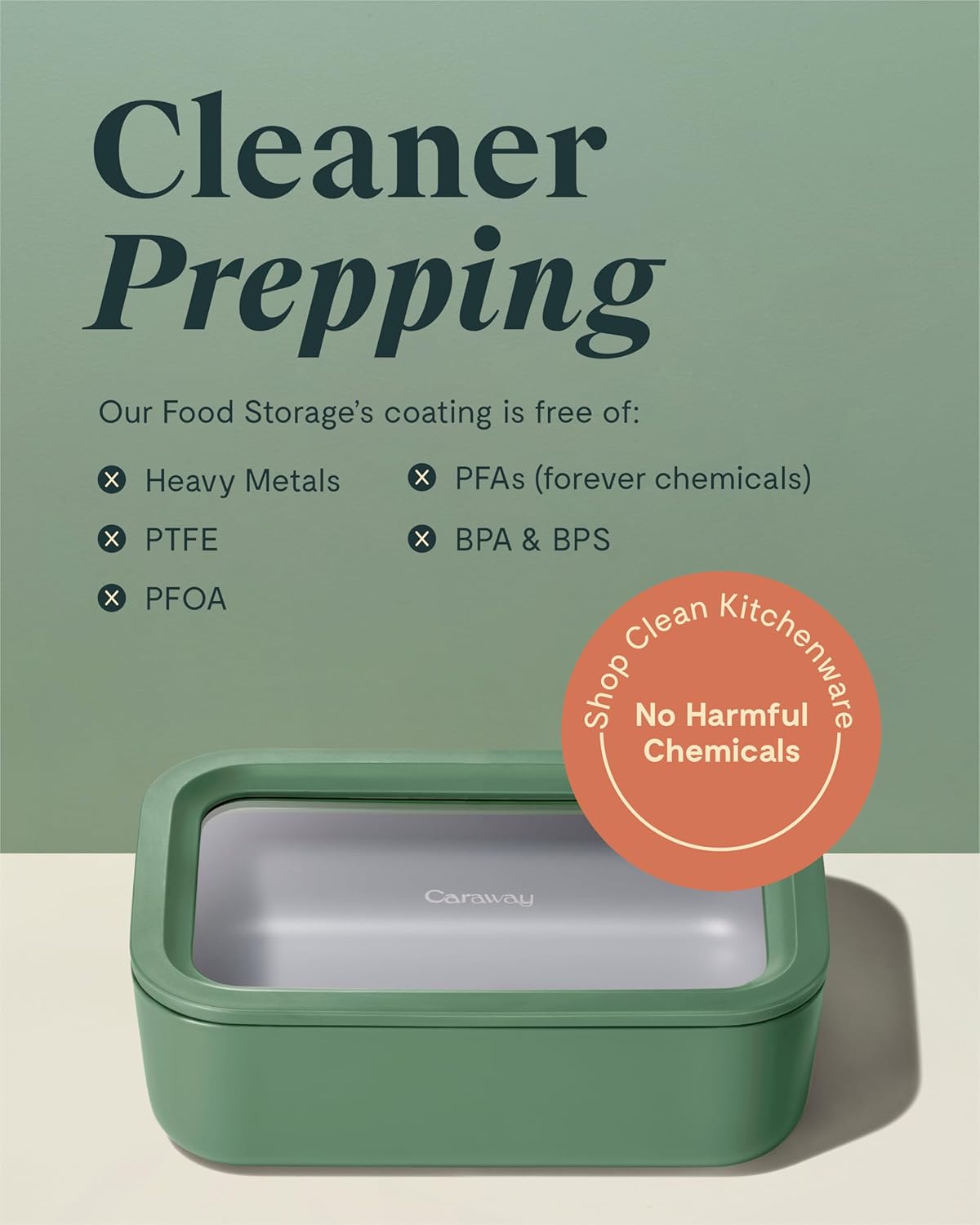 • BEAUTIFULLY DESIGNED: The cleanest, best-looking approach to storing your food. Our glass container features a clear glass lid for easy viewing Each container comes in modern colors that will match with your entire Caraway collection.