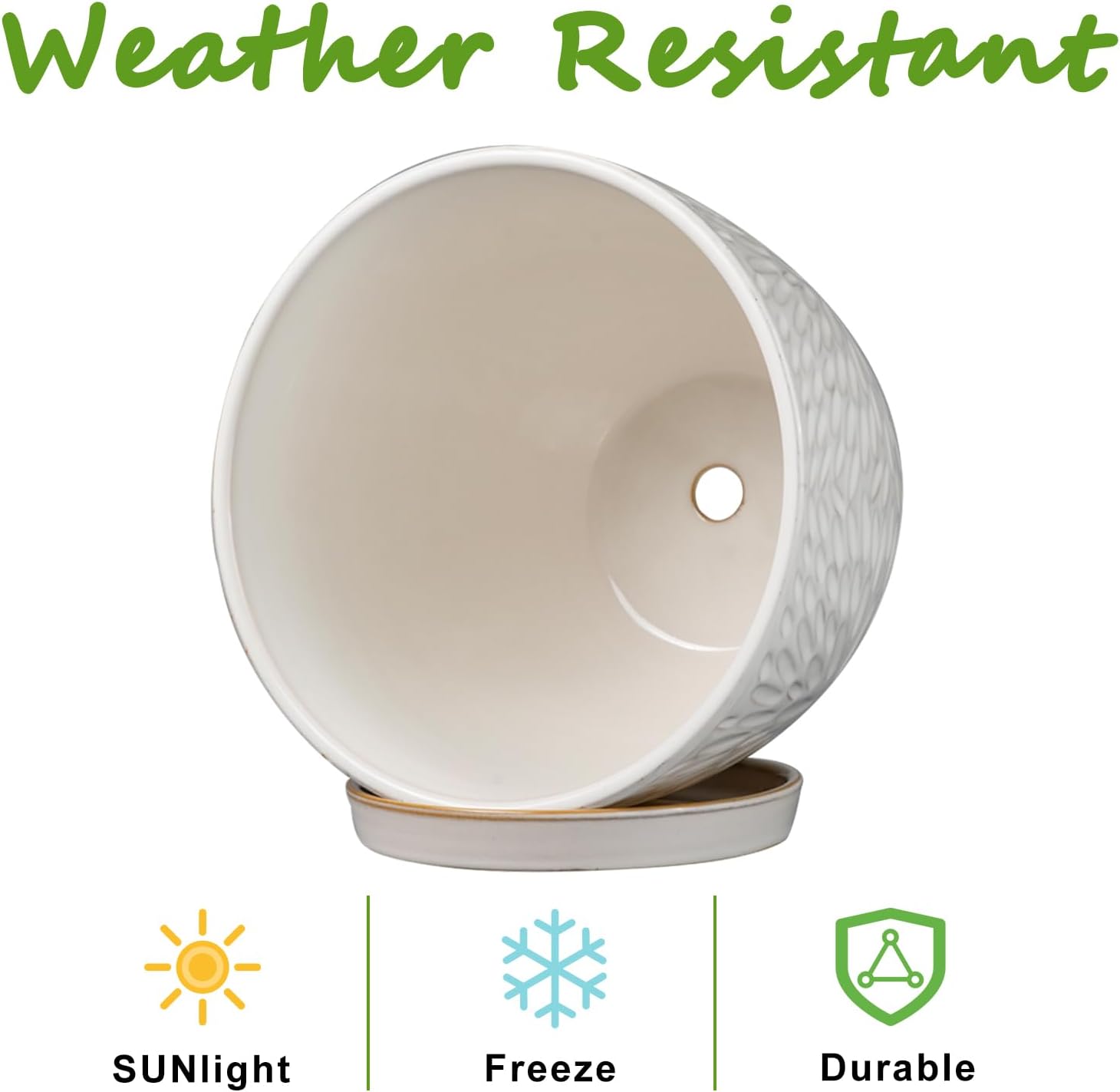 • Durable Ceramic: This 10 inch plant pot has a high-temperature firing for excellent air permeability, as well as frost and can be used for long time, making it nice for both outdoor and indoor use