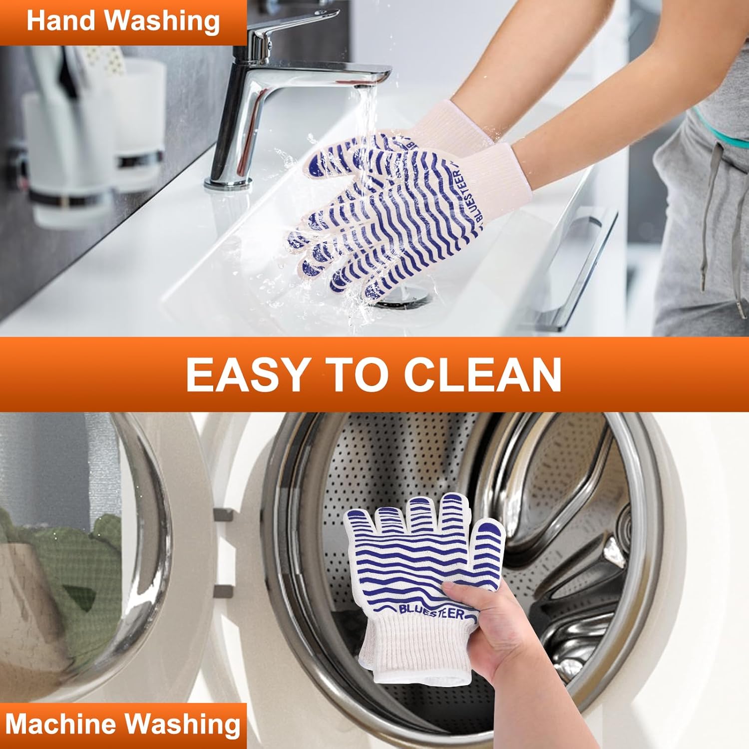 • EASY TO CLEANING AND STORAGE: The kitchen cooking gloves can be hand or machine washed. The strip design allows you to easily hang them on the hooks, which are easy to dry and help you store them. Whether you use it indoors or outdoors, it is the perfect helper to make cooking easier