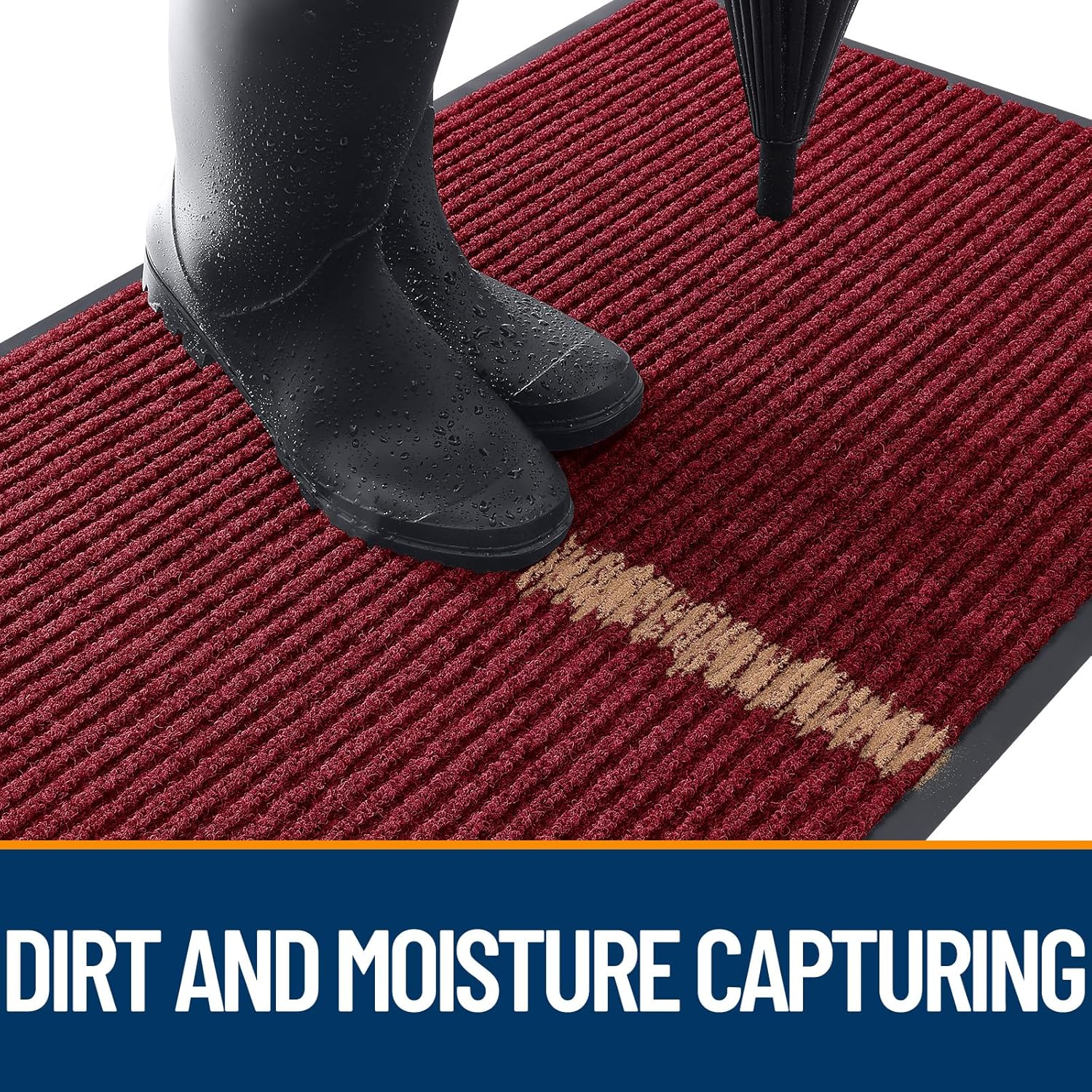 OLANLY Front Door Mat Indoor Outdoor Entrance, Waterproof Heavy Duty Doormat, Fade Resistant, Low Profile, Easy Clean Patio Porch Welcome Floor Mats for Entry, 59x35, Wine Red