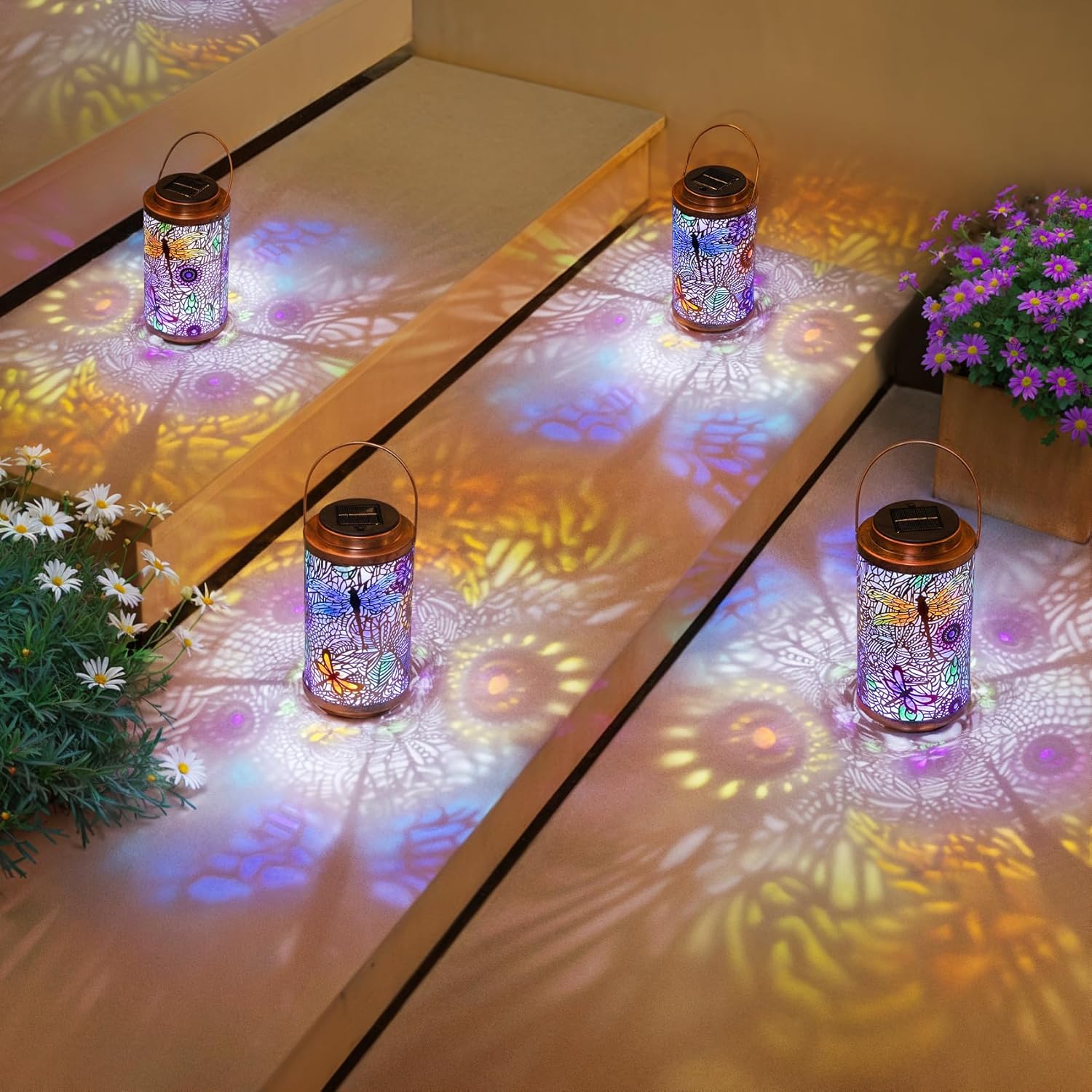 • Solar Powered, Energy Saving: No need for batteries or electricity. The outdoor solar lanterns charged in direct sunlight by day, and automatically light up at night. The beautiful shadows are playful and artistic which help creating a beautiful ambiance in your balcony, yard, garden, patio, terrace, pavilion, window or porch