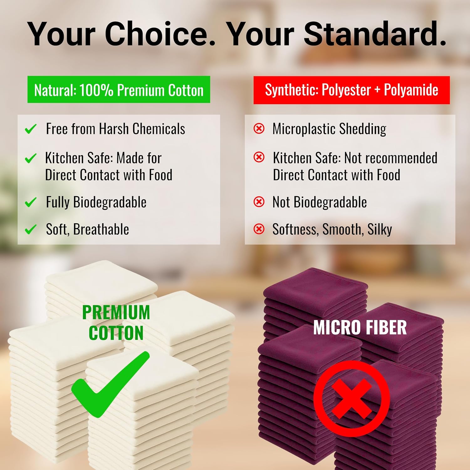 WHITEWRAP Dish Cloths Cotton| Kitchen Wash Cloth| Shop Towels Absorbent and Lint Free Flour Sack| Dishcloths for Kitchen Washing Dishes|Thick Absorbent Quick Dry Dish Rags |50Pack 13"x13" Natural