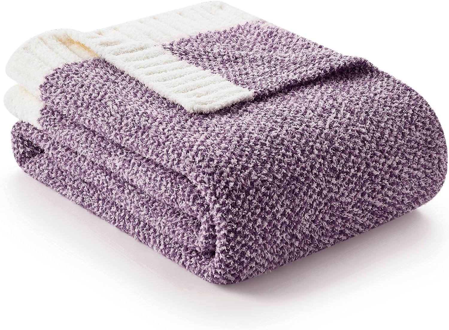 Snuggle Sac Purple Reversible Super Soft Blanket Twin Size for Bed and Sofa, Warm Cozy Knit Blankets Fuzzy Plush, Heather Purple, 60x80 inches