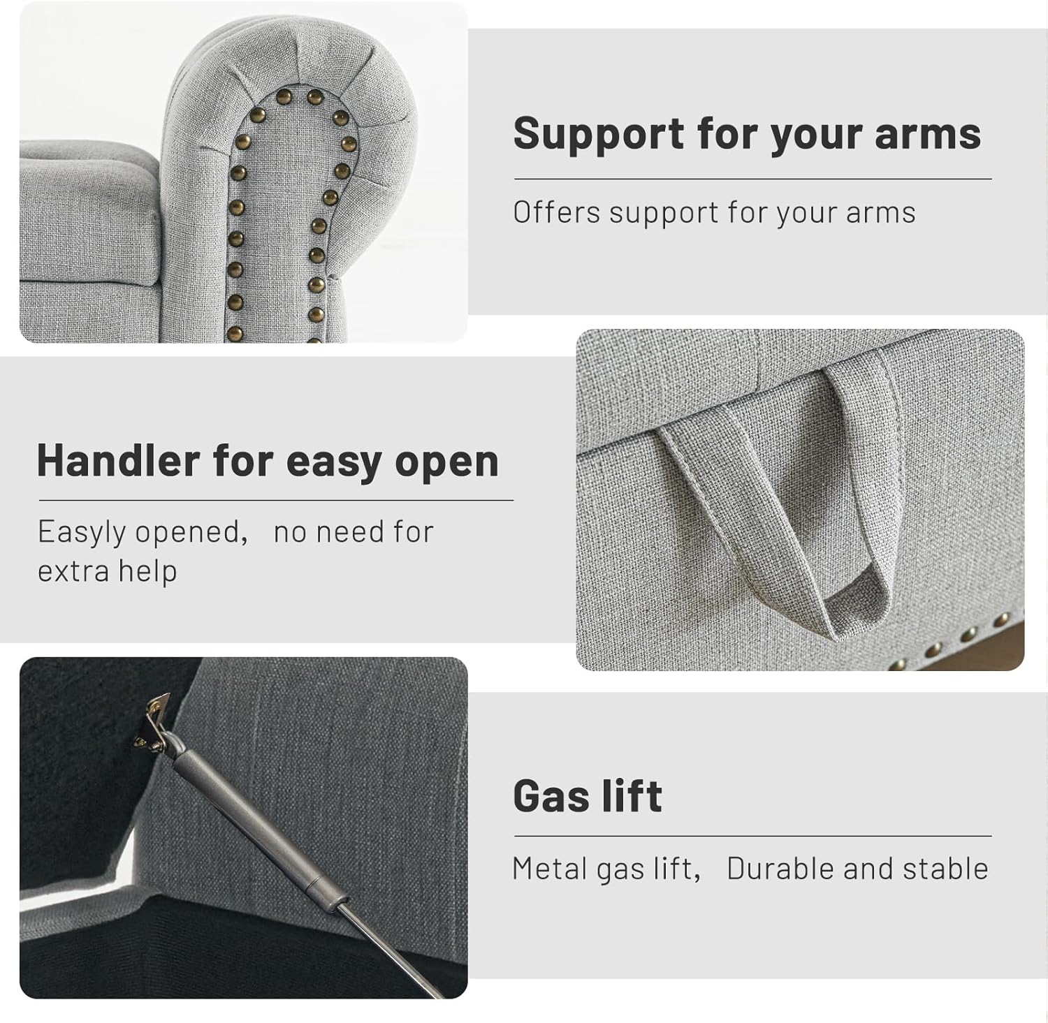 • ·Top-quality Planks&Sophisticated Mechanics: The ottoman bench frame made of multi-layer solid wood planks offers excellent breathability, durability, and support. The easy-lift and soft-close mechanism of the composite hinge and support arm structure ensures that the seat surface opens smoothly. It allows for easy and slow closure, providing a safe and effortless user experience.