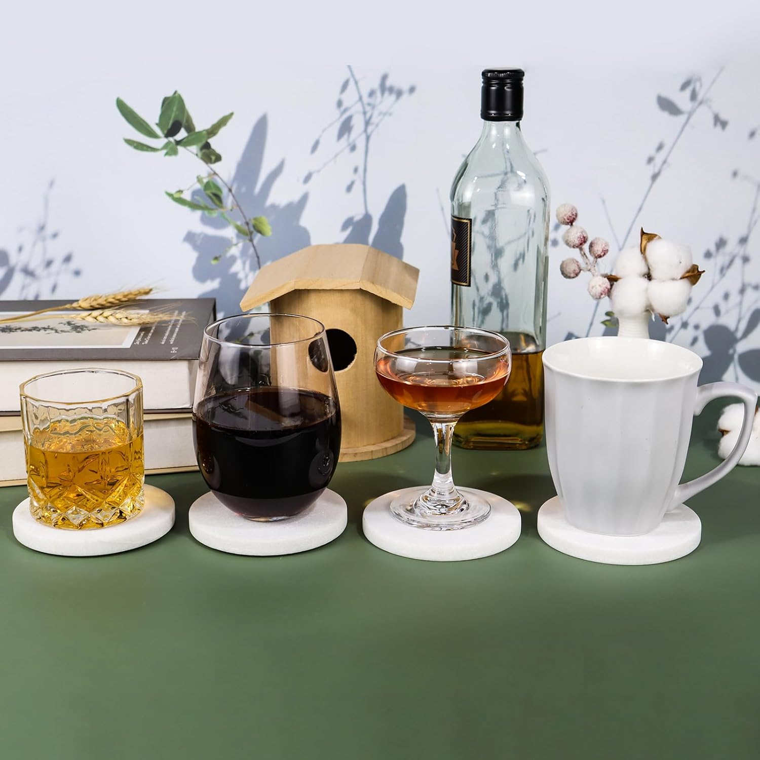 • [ Package Includes ]: 4 pure white marble coasters in round shape. The diameter of each is 4 inches, the thickness is 0.4 inches. The weight of each is about 0.5 lb / 220 g.