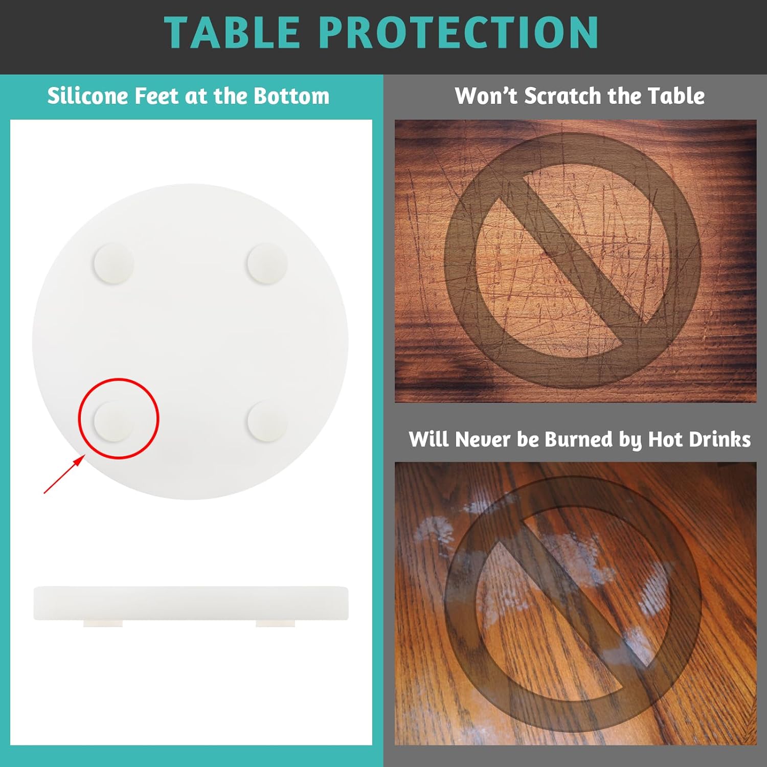 • [ Ultimate Table Protection ] : Each coaster is equipped with 4 silicone feet on the underside, protecting your surfaces from scratches. The coasters’ thickness and heat-resistant properties, combined with the silicone feet, prevent heat damage and unsightly marks from hot beverages.