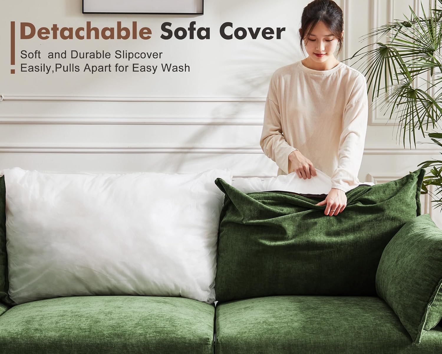• 💡 Premium Chenille Fabric - The modern sofa is upholstered in premium chenille fabric that feels luxurious to the touch, offering both comfort and durability. The material is not only soft and inviting but also non-pilling and won't stain, ensuring long-lasting quality.