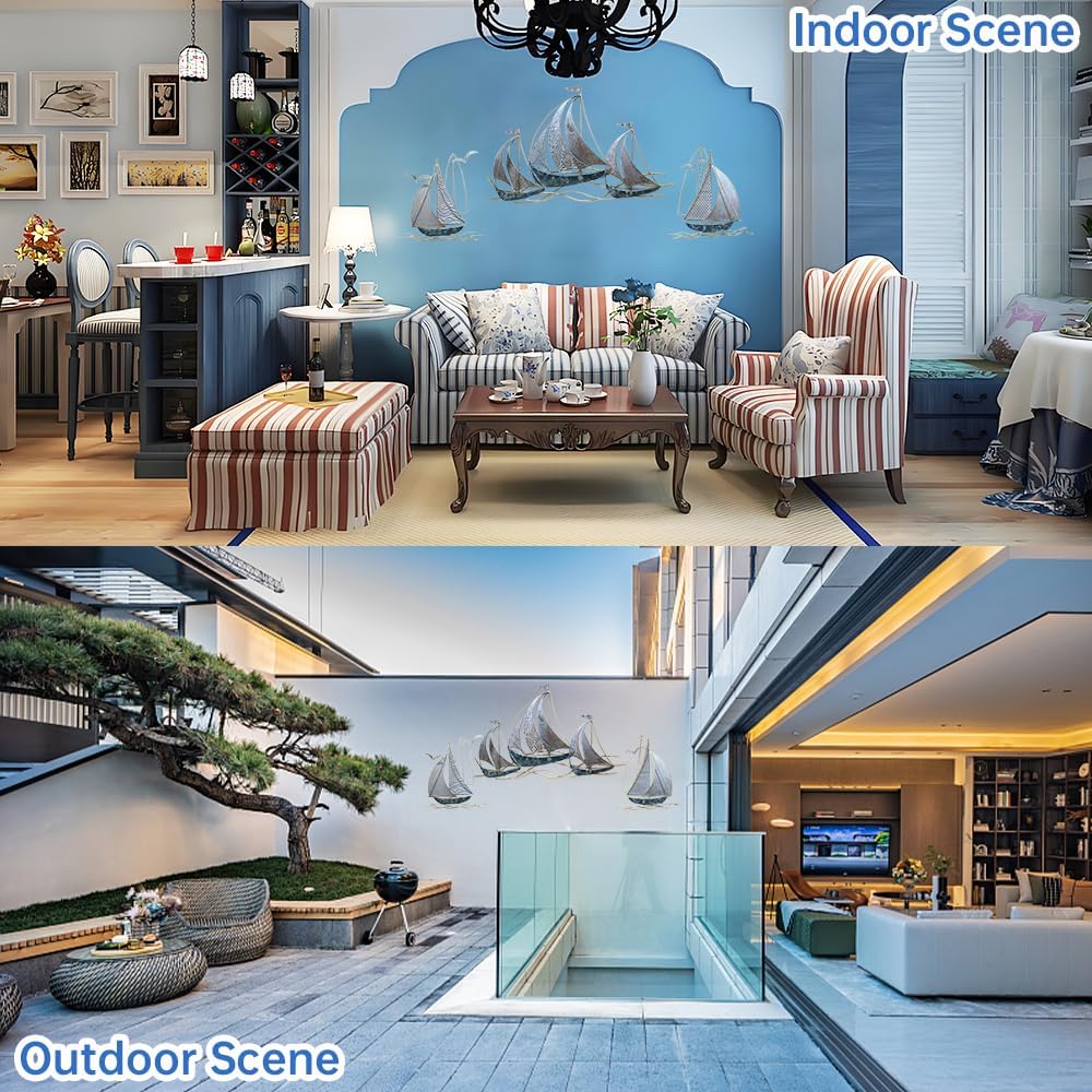 AIYIOUWE Metal Sailboat Wall Art, 3D Nautical Ship Large Metal Wall Art Decor, Coastal Boat Wall Hanging Sculptures Beach Artwork for Living Room Outdoor Bedroom