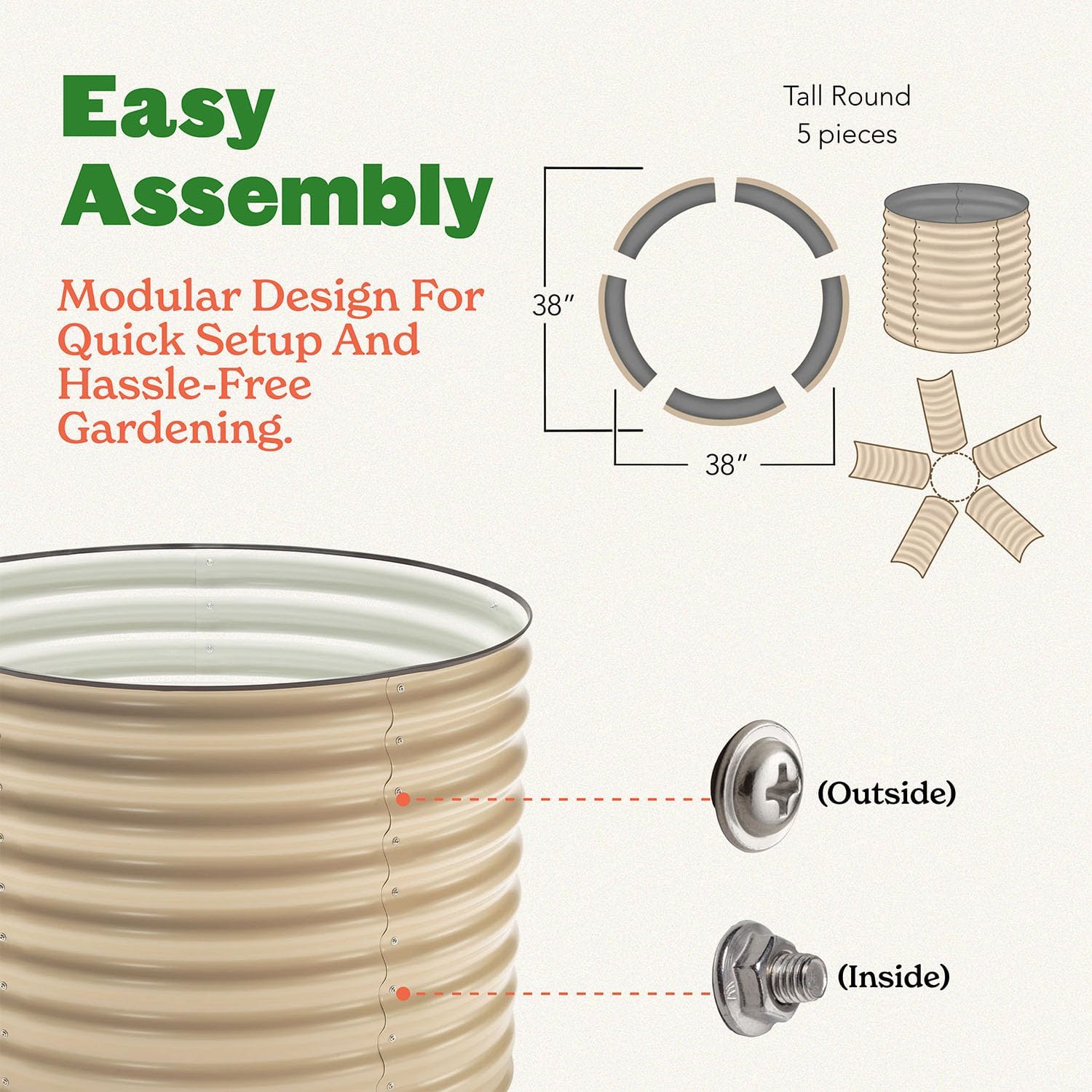 Epic Gardening 5-in-1 Modular Galvanized Raised Garden Bed Kit, 15" Tall Metal Planter Box, Durable Aluzinc Steel Raised Garden Bed Outdoor for Vegetables, Herbs, Flowers & Fruits - Round - Light Clay