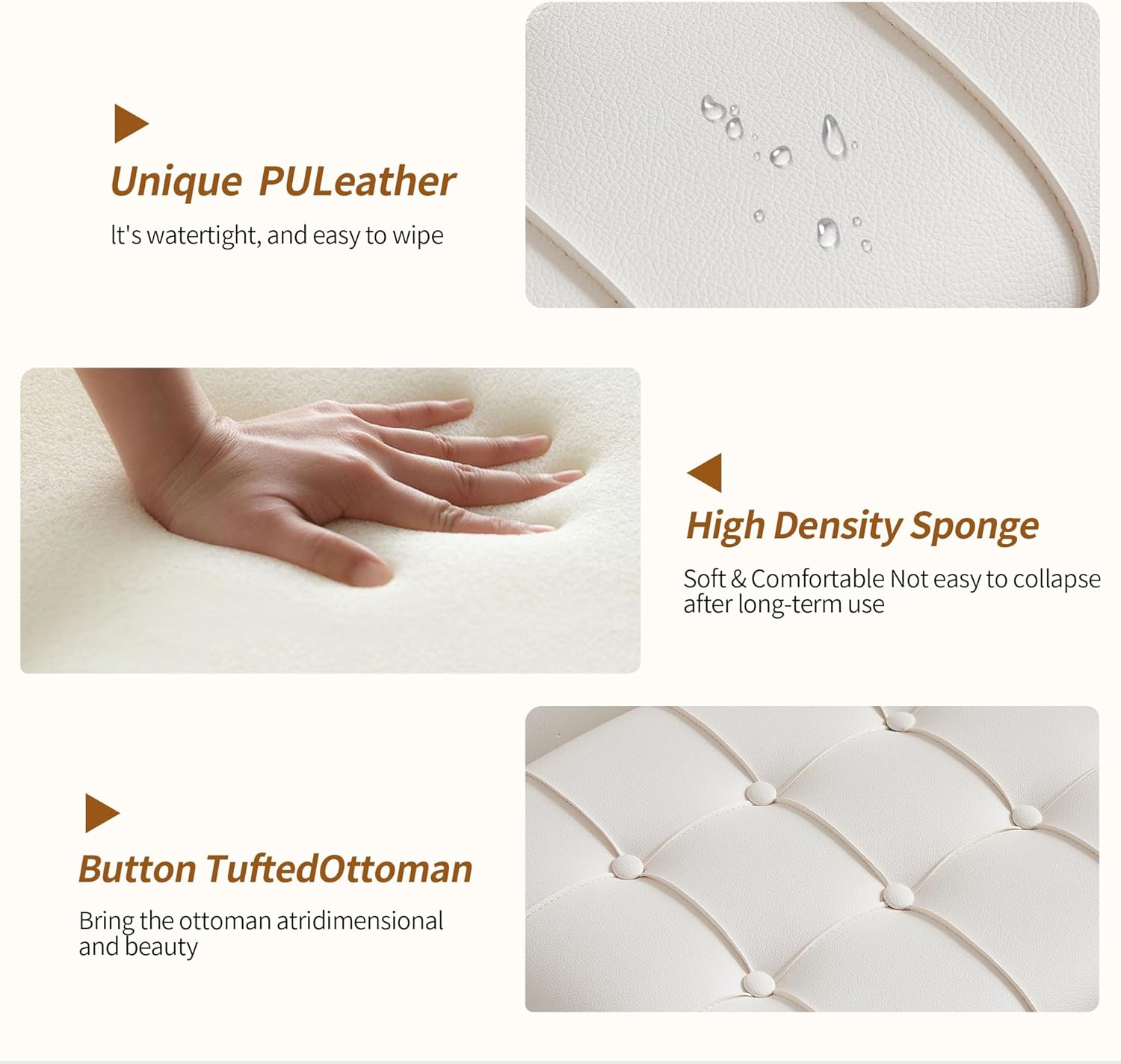 • 【 Widely used 】 This bench ottoman is usually put at the end of bed in bedroom,as a end bed bench, It can be used for sitting or for placing feet while lying in bed.The bed bench can also be used as a footstool, fashion seat, shoe stool, window bench, or pet bed. Light weight, but firm and comfy, it can be moved easily to living room, bedroom, office, fashion closet, kid's playroom, den, studio apartment.Color that is elegent and classic, it adds a visual interest in your room