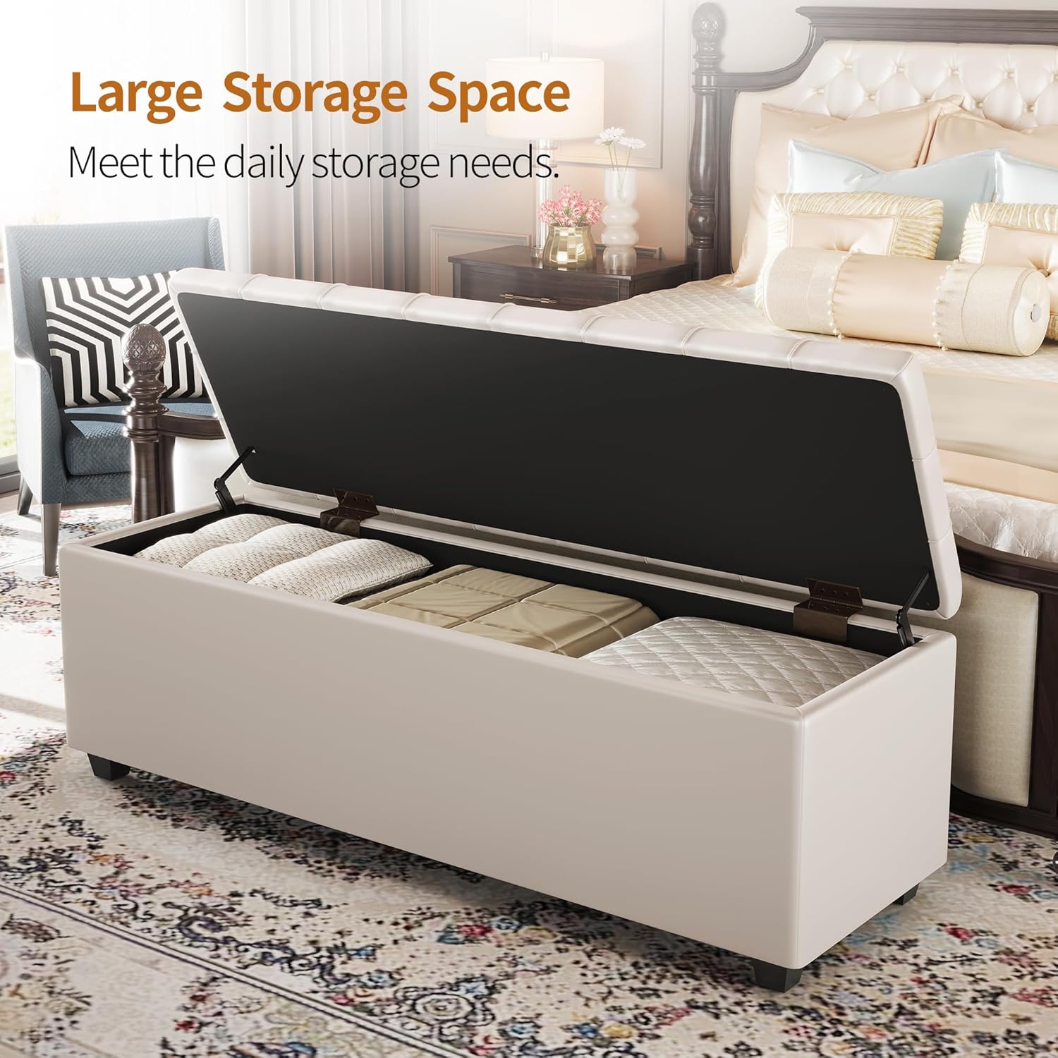 Small 38 Inches Long White Ottoman Bench with Storage,Footstool Furniture End of Bed Benches,Faux Leather Ottomans and Seat for Foot Rest in Bedroom, Living Room, Entryway