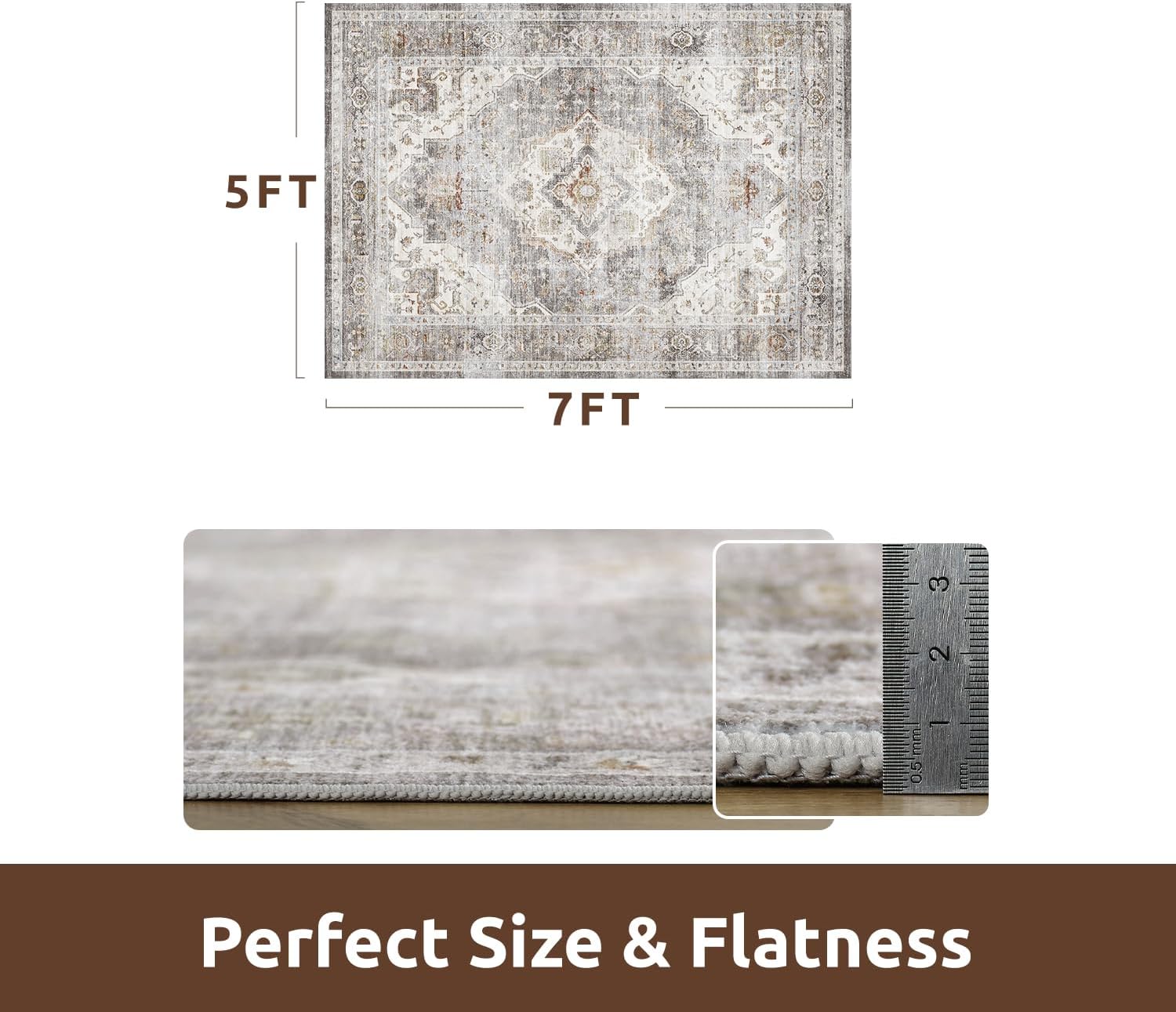 AMOAMI-Area Rug 5X7 Rugs for Living Room-Vintage Soft Grey Rugs for Bedroom-Non Slip Carpet-Machine Washable Rug for Dining Room Living Room Bedroom Office Under Table