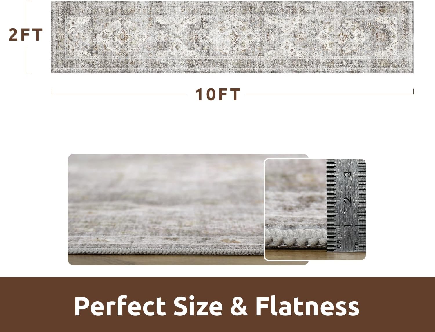 AMOAMI-2X10 Runner Rug-Washable Runners for Hallways-Soft Non Slip Bedside Rugs for Bedroom-Vintage Long Rug for Hallways Entryway Laundry Room Stair Kitchen Bathroom Grey